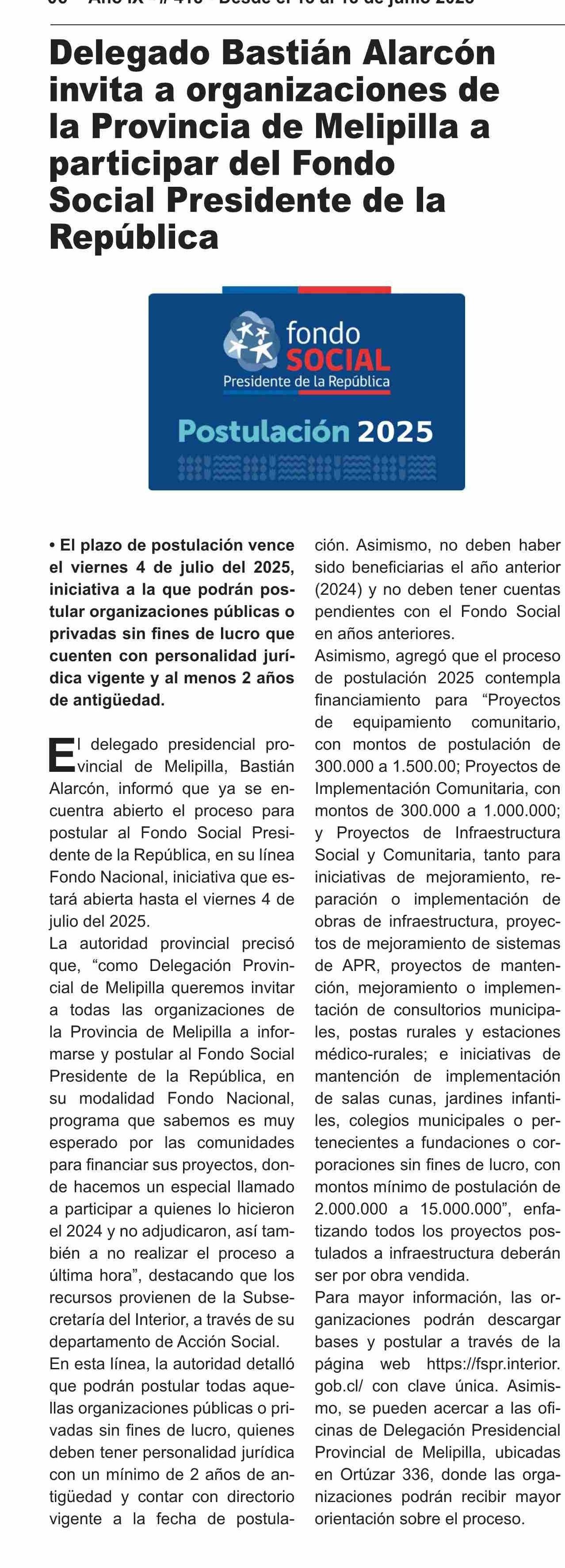 Delegado Bastián Alarcón invita a organizaciones de la Provincia de Melipilla a participar del Fondo Social Presidente de la República 17-06-2025 Buenos Días Curacaví |