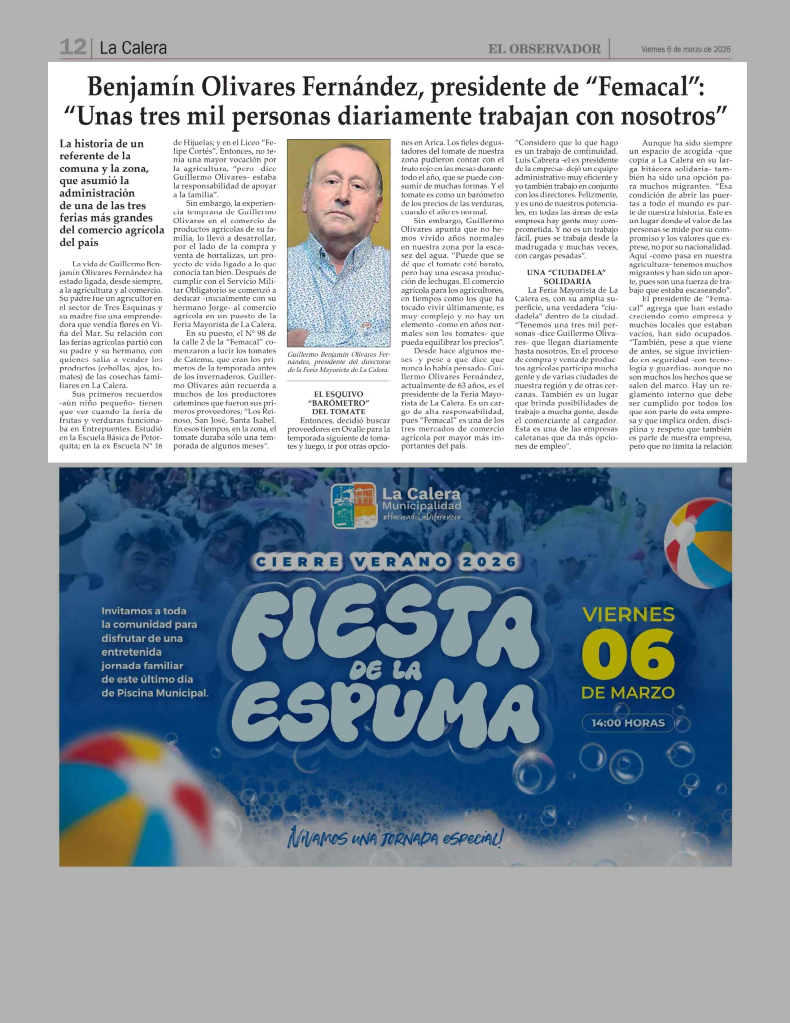 Título: Benjamín Olivares Fernández, presidente de "Femacal": "Unas tres mil personas diariamente trabajan con nosotros"