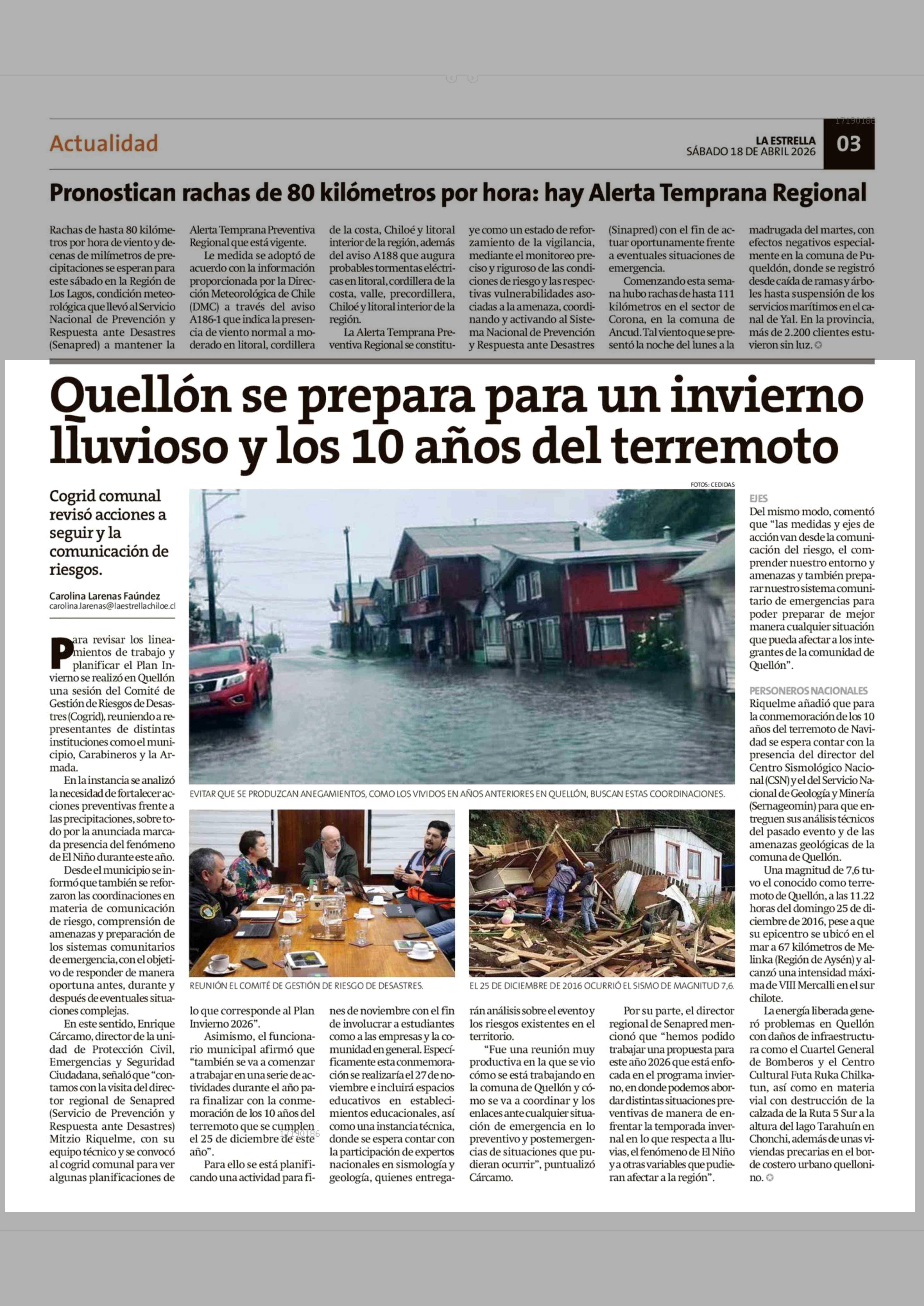 Título: Quellón se prepara para un invierno lluvioso y los 10 años del terremoto