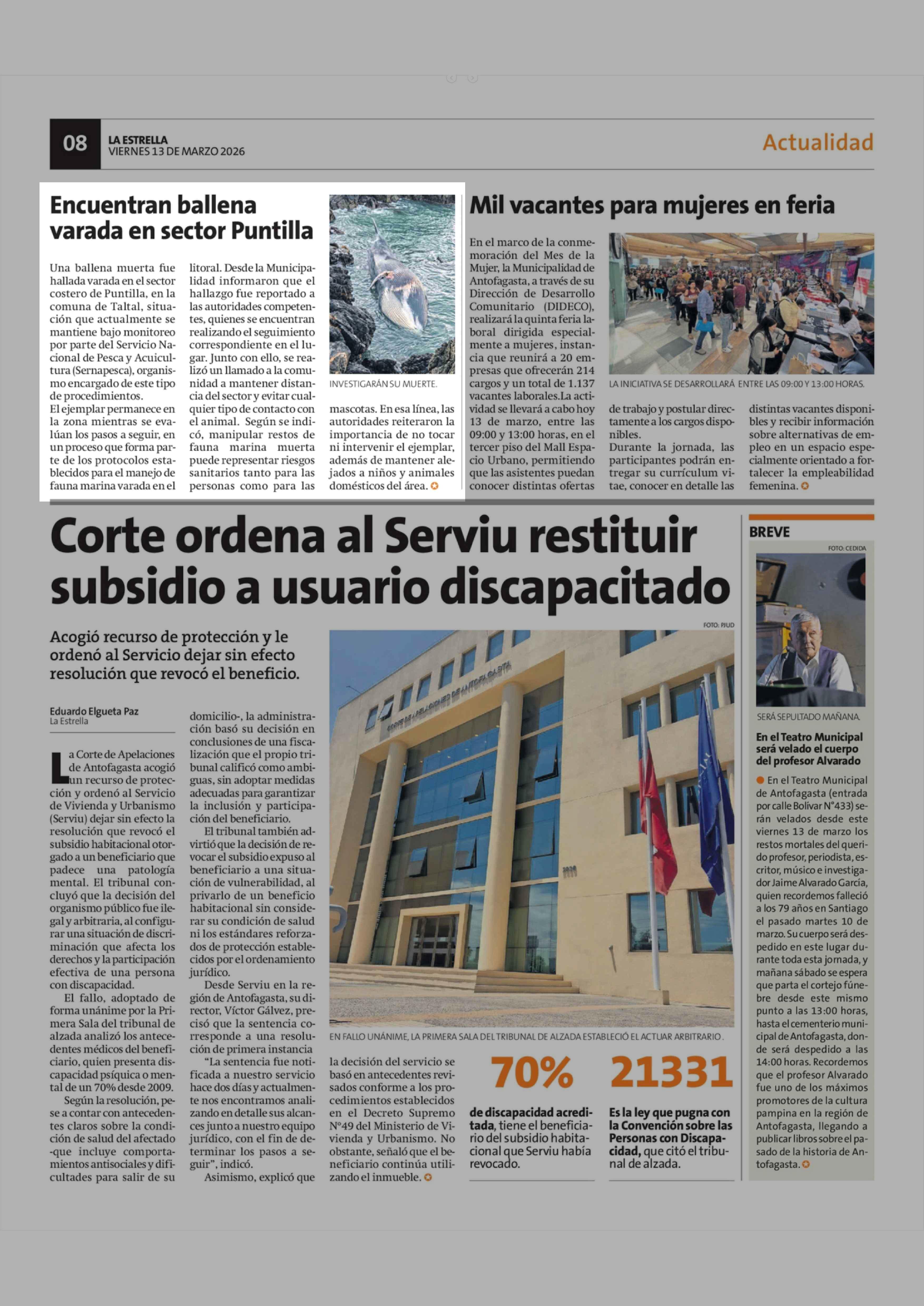| Fecha: | 13-03-2026 | Sector: | Noticia general | Región: | Región de Antofagasta |