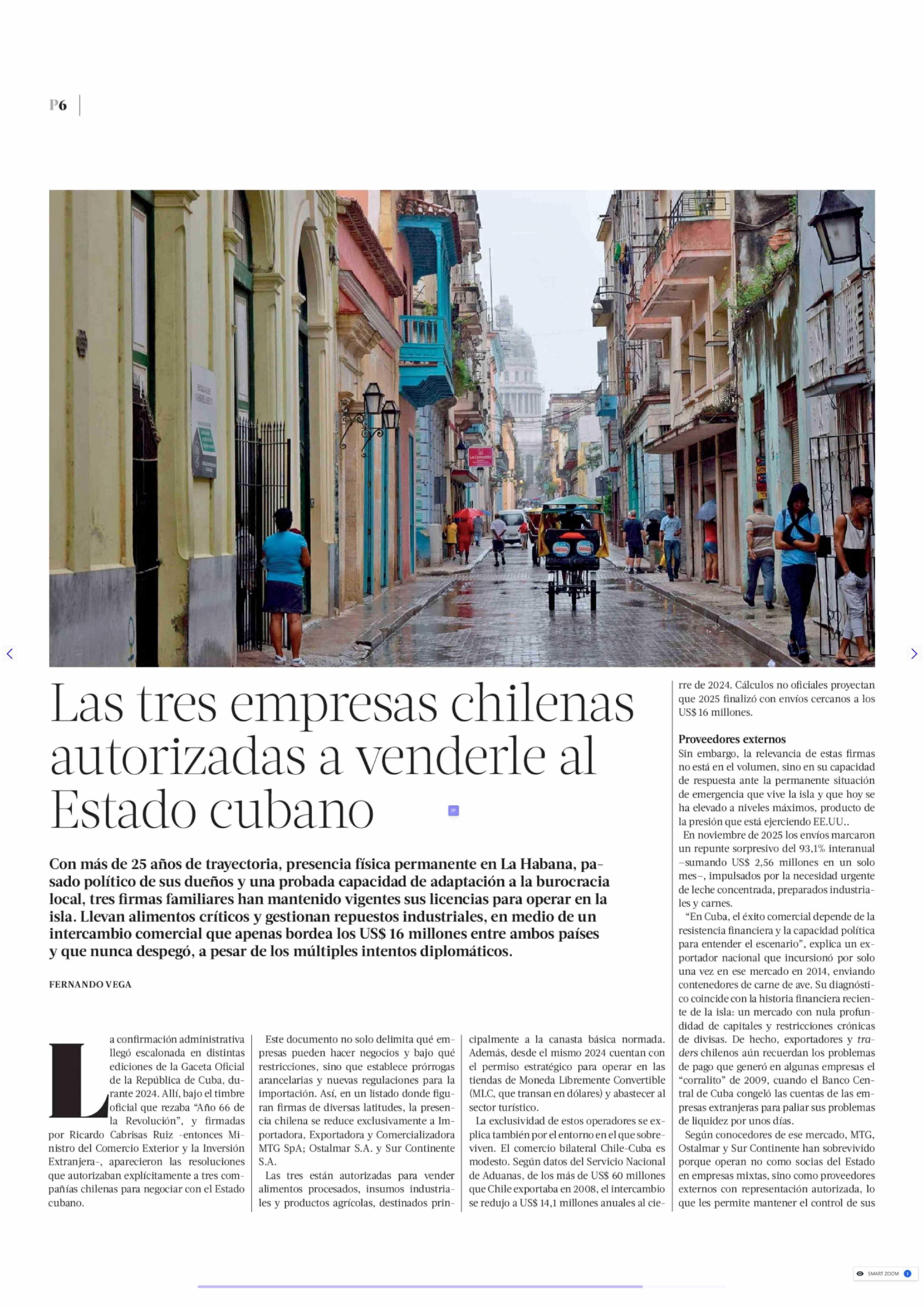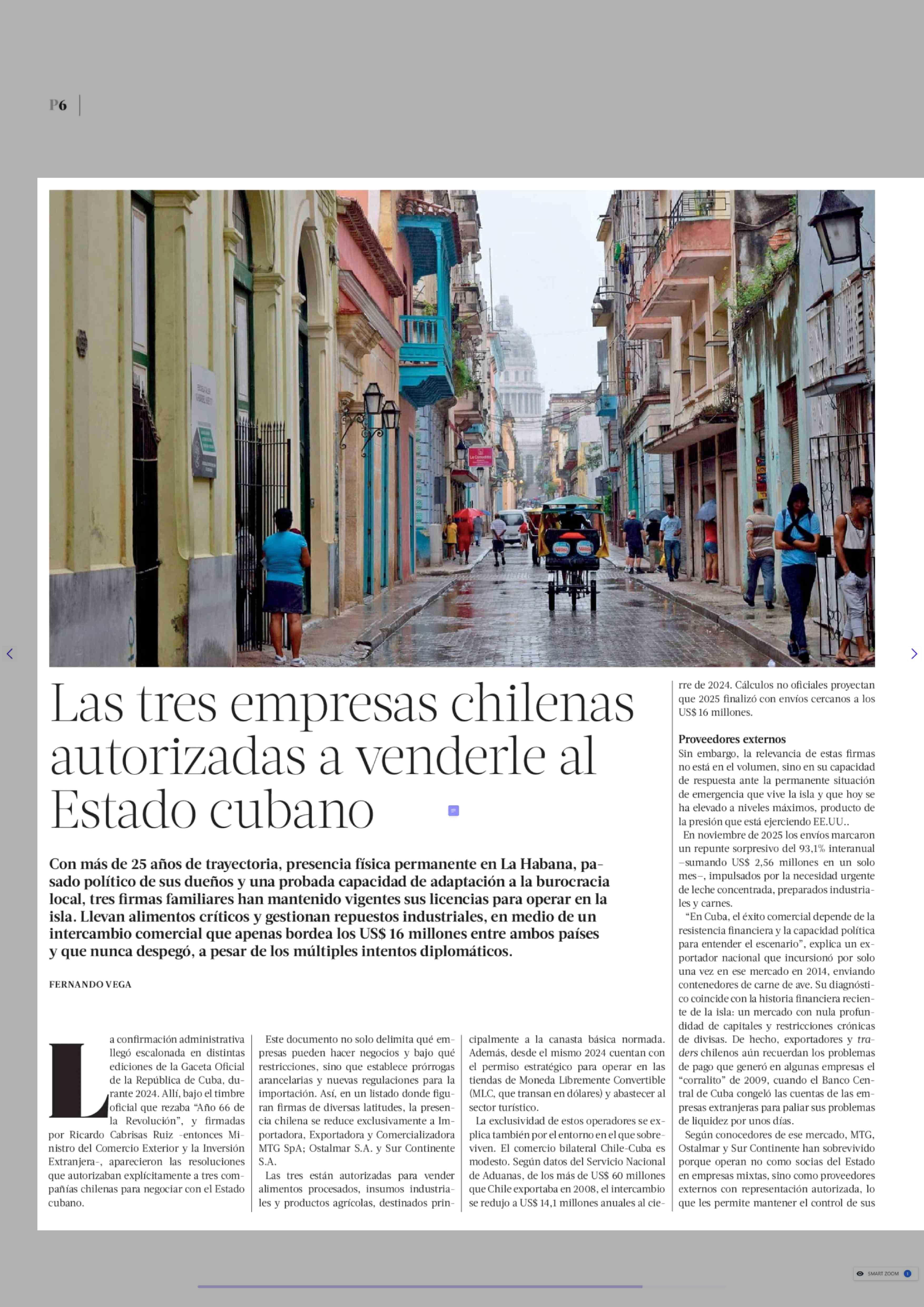 | Título: | Las tres empresas chilenas autorizadas a venderle al Estado cubano |