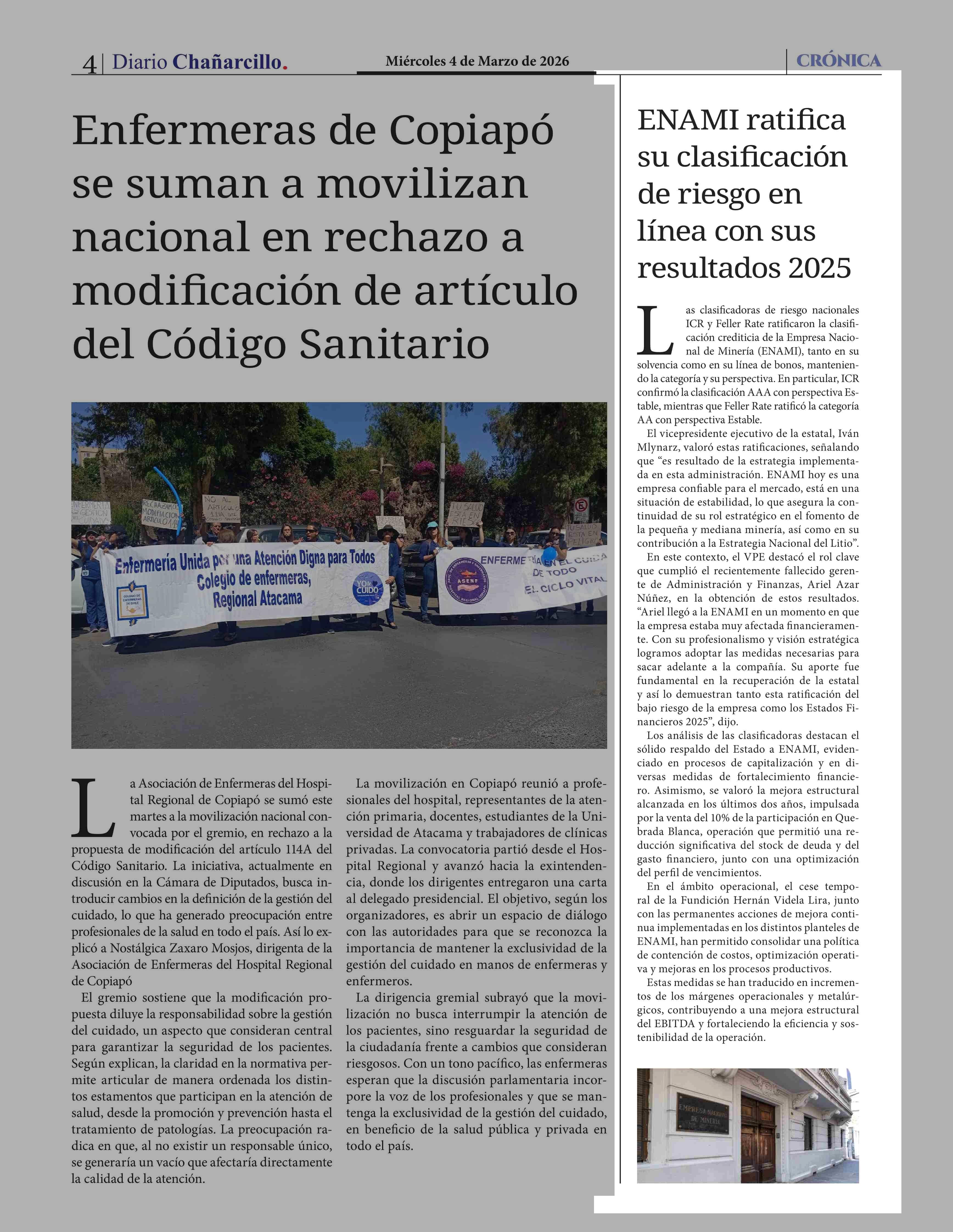 ENAMI ratifica su clasificación de riesgo en línea con sus resultados 2025 04-03-2026 Diario Chañarcillo |