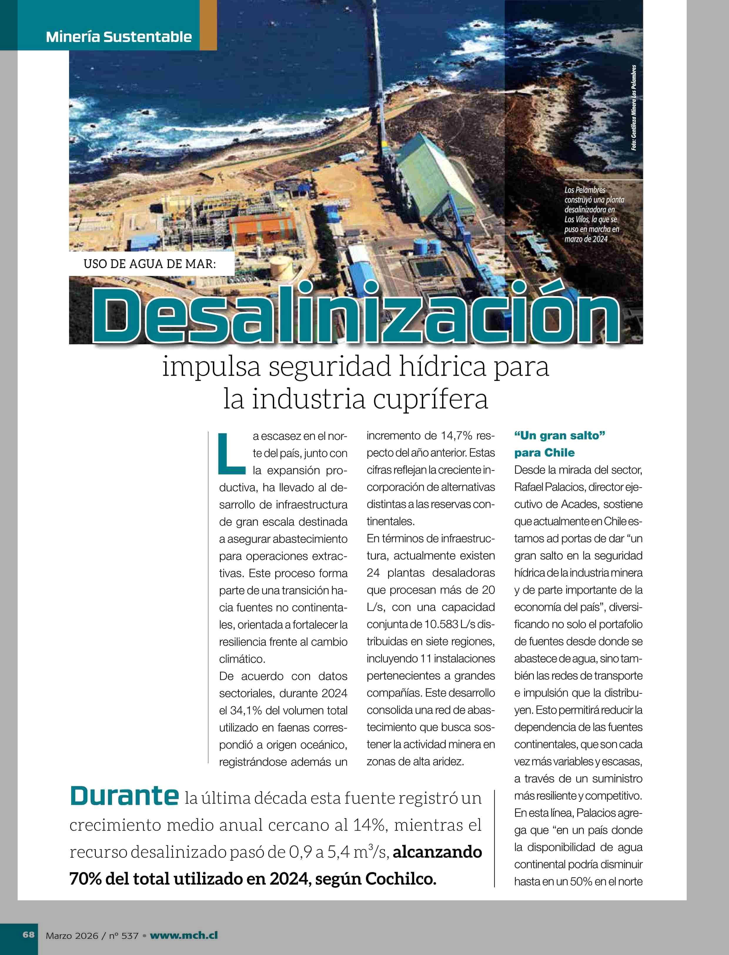 Título: Desalinización impulsa seguridad hídrica para la industria cuprifera