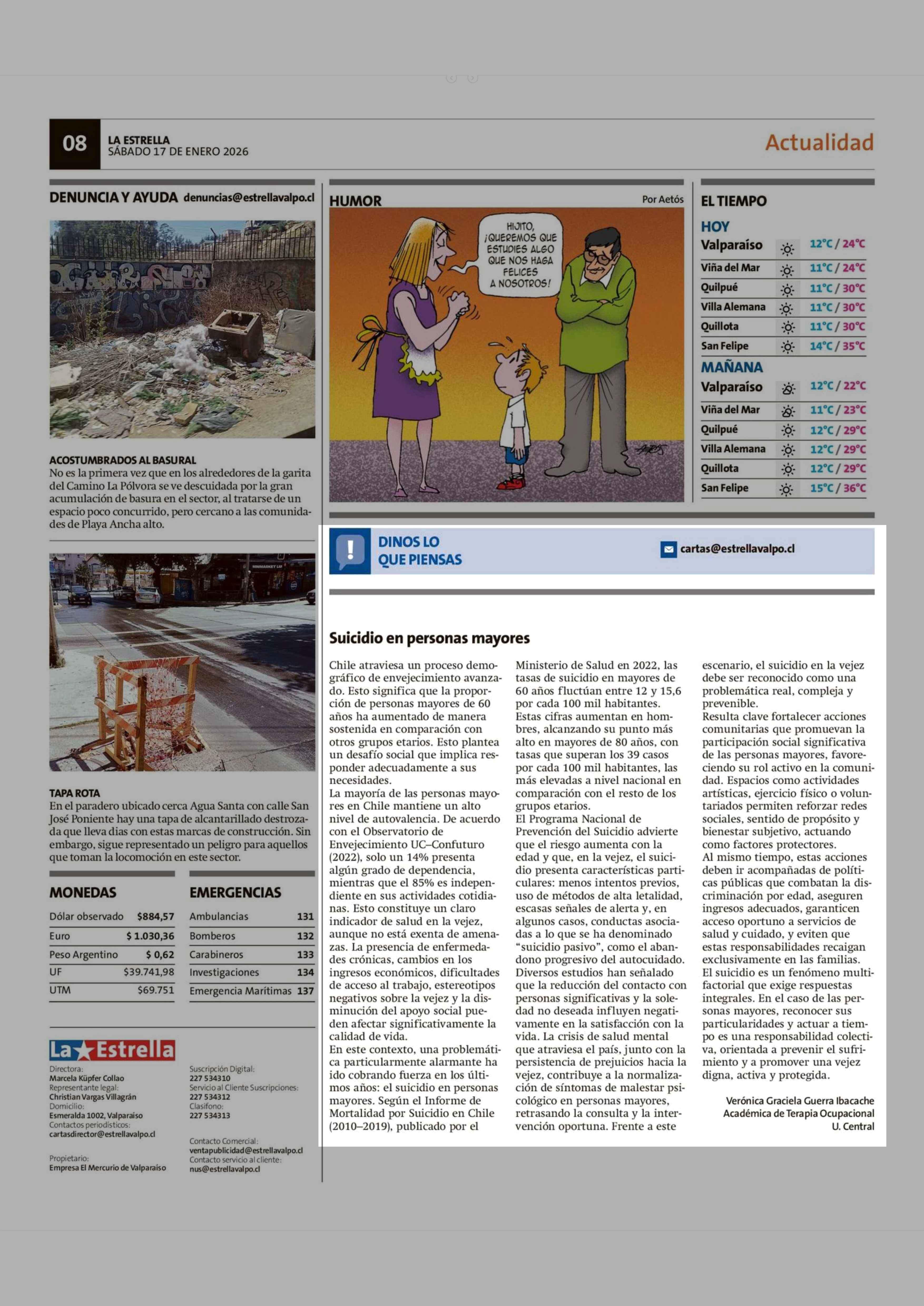 Suicidio en personas mayores 17-01-2026 La Estrella de Valparaíso |
