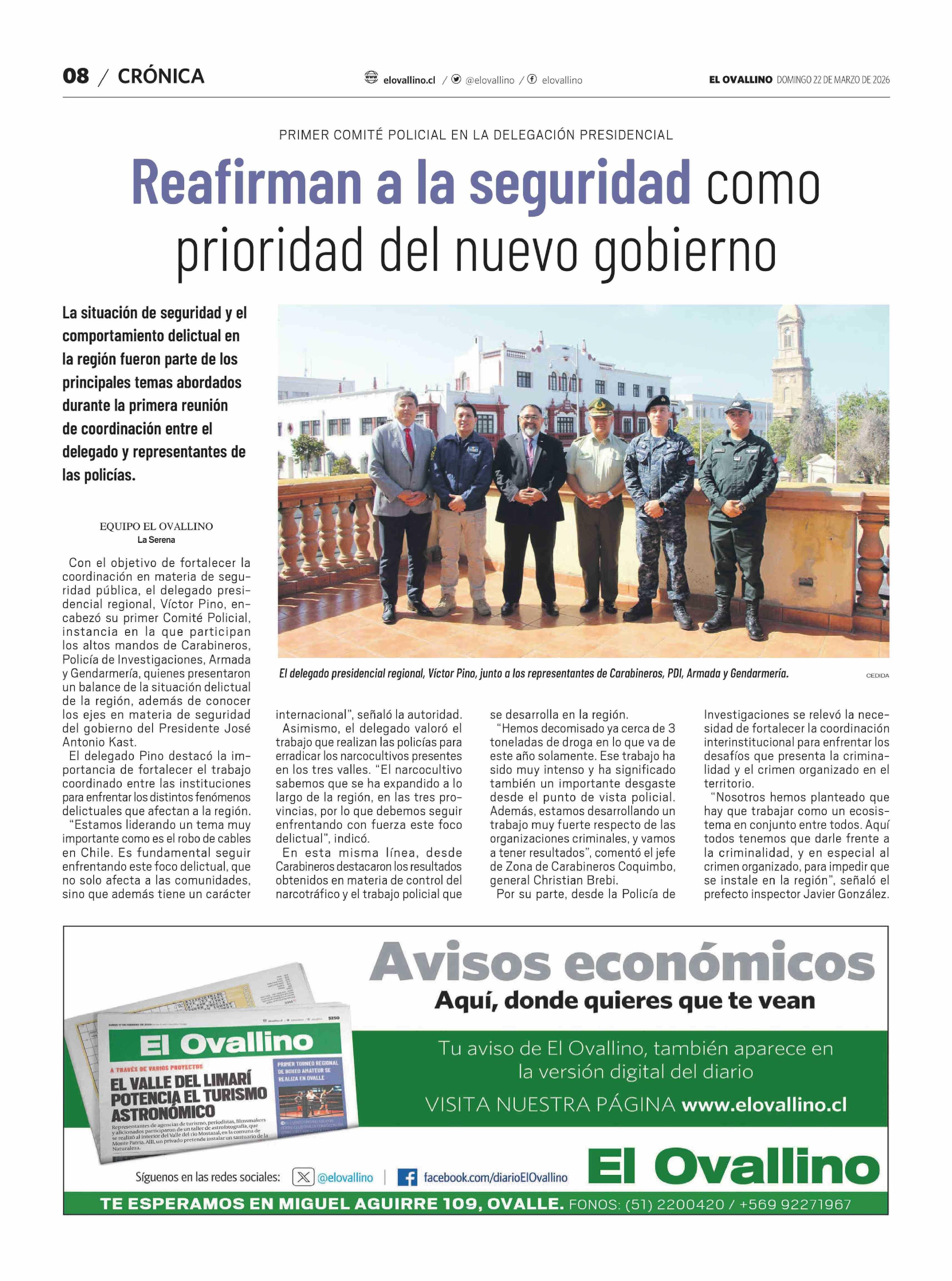 Reafirman a la seguridad como prioridad del nuevo gobierno 22-03-2026 El Ovallino |