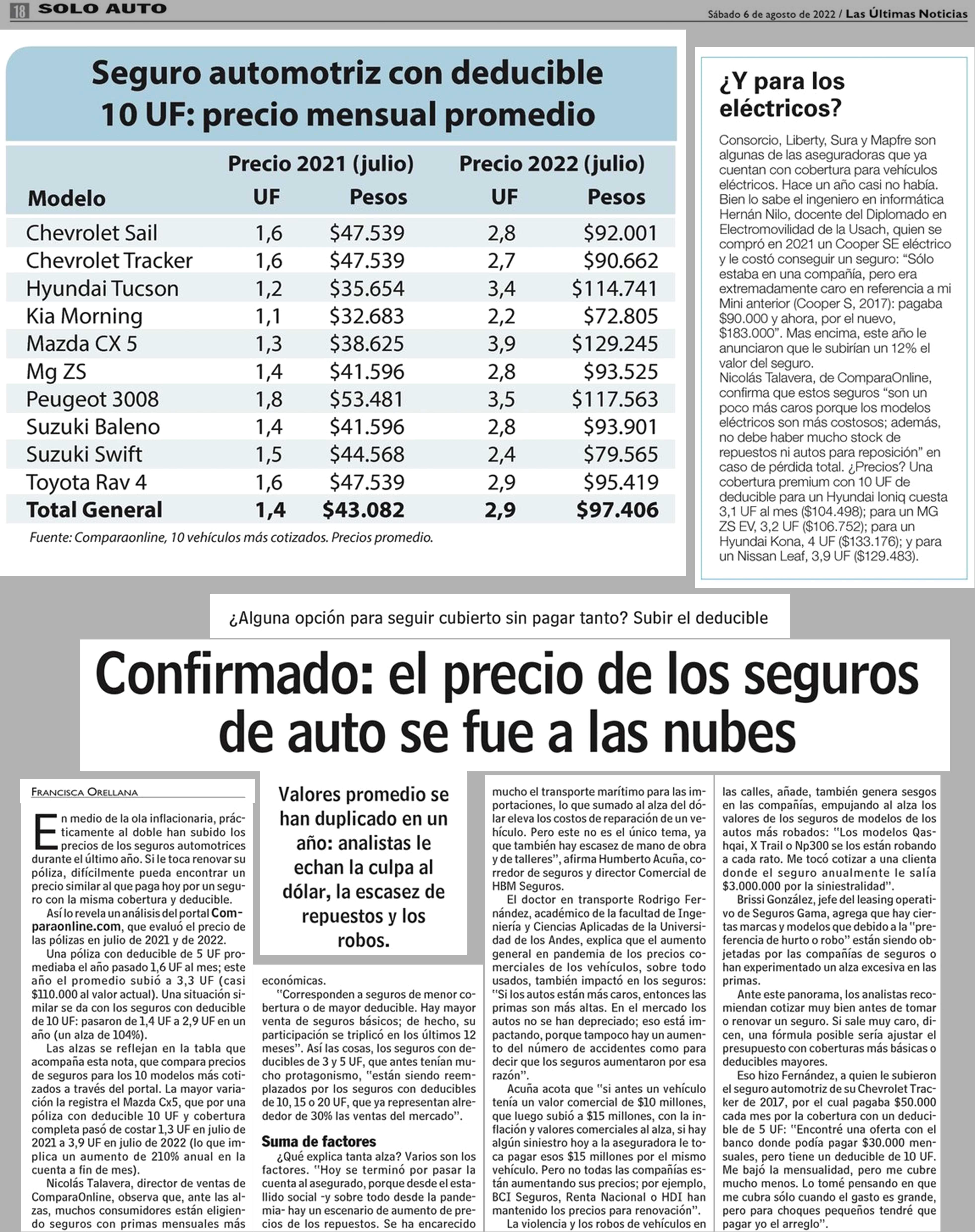Confirmado: el precio de los seguros de auto se fue a las nubes 06-08-2022 Las Últimas Noticias |