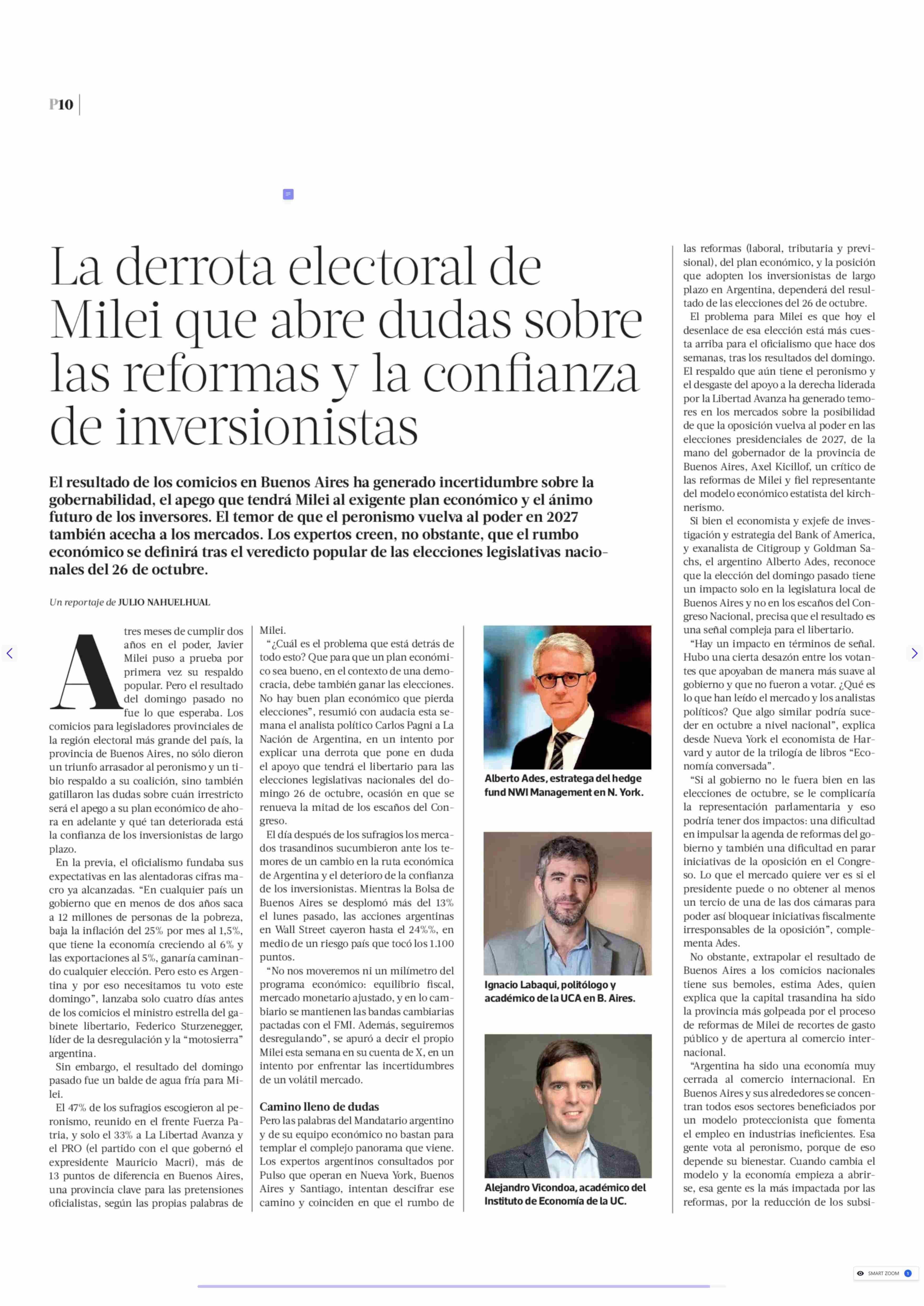 | Título: | La derrota electoral de Milei que abre dudas sobre las reformas y la confianza de inversionistas |