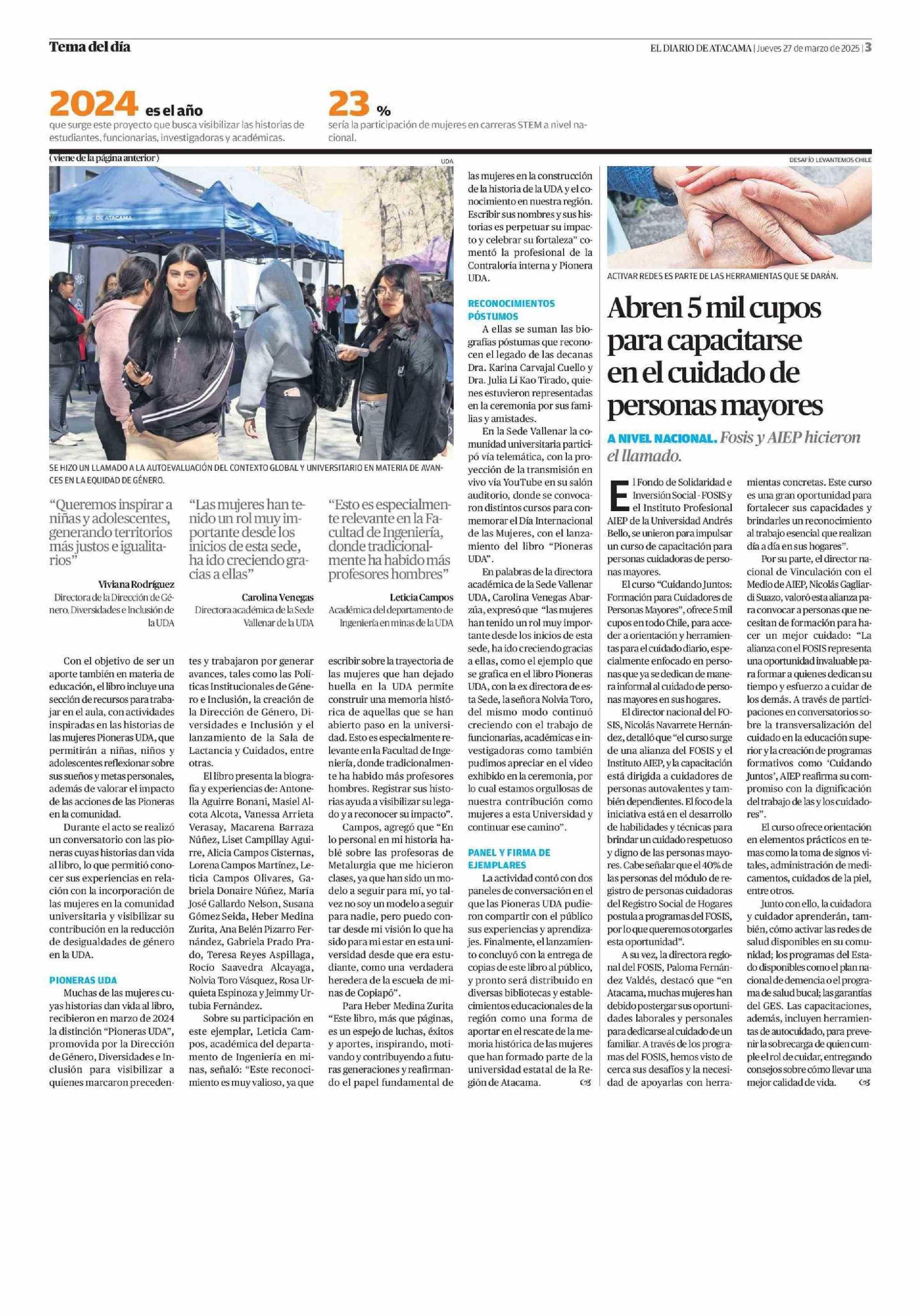Relevan el rol de 21 mujeres en acortar brechas de género 27-03-2025 El Diario de Atacama |