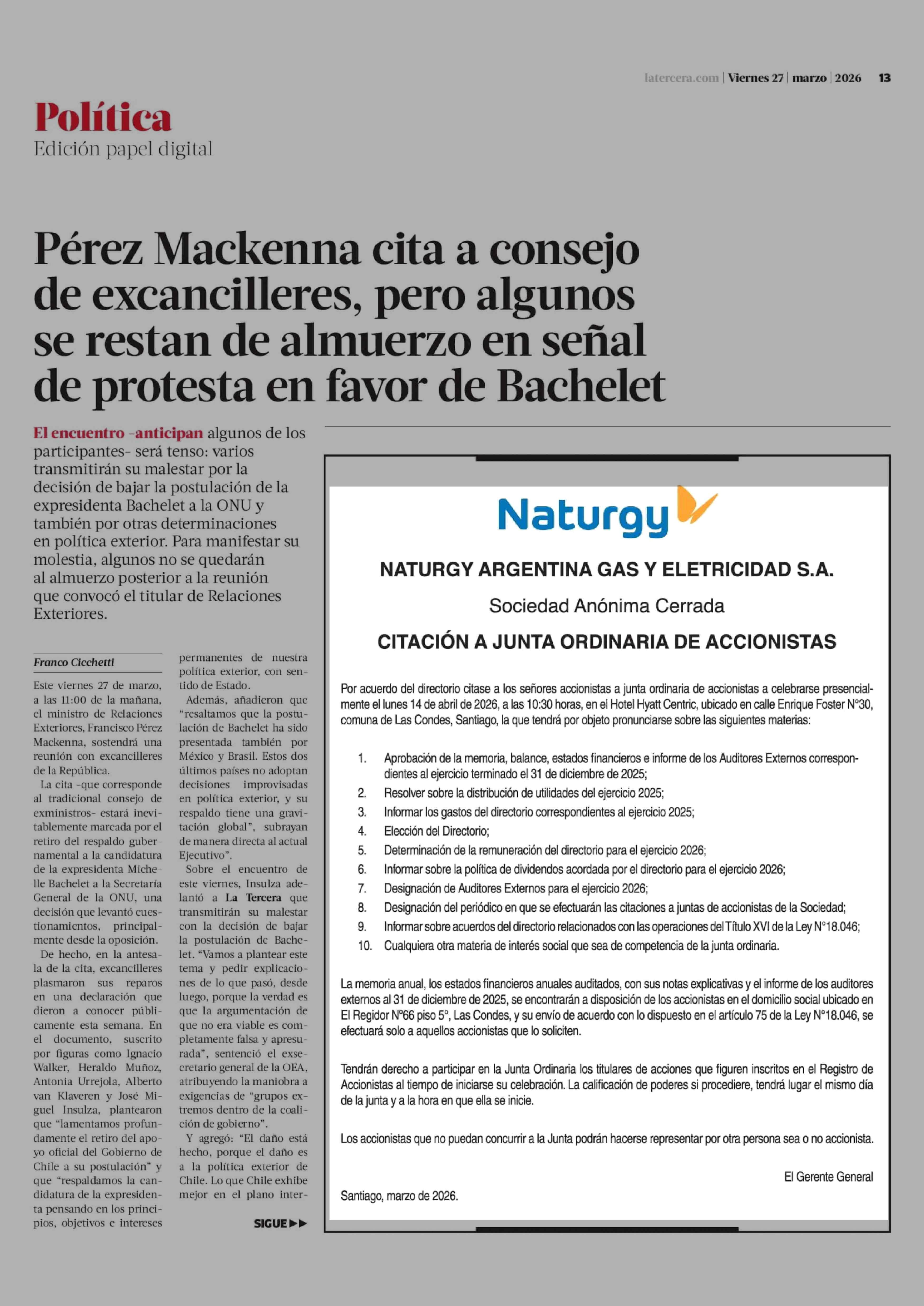 Fuente: La Tercera (La Tercera) Página(s): 13