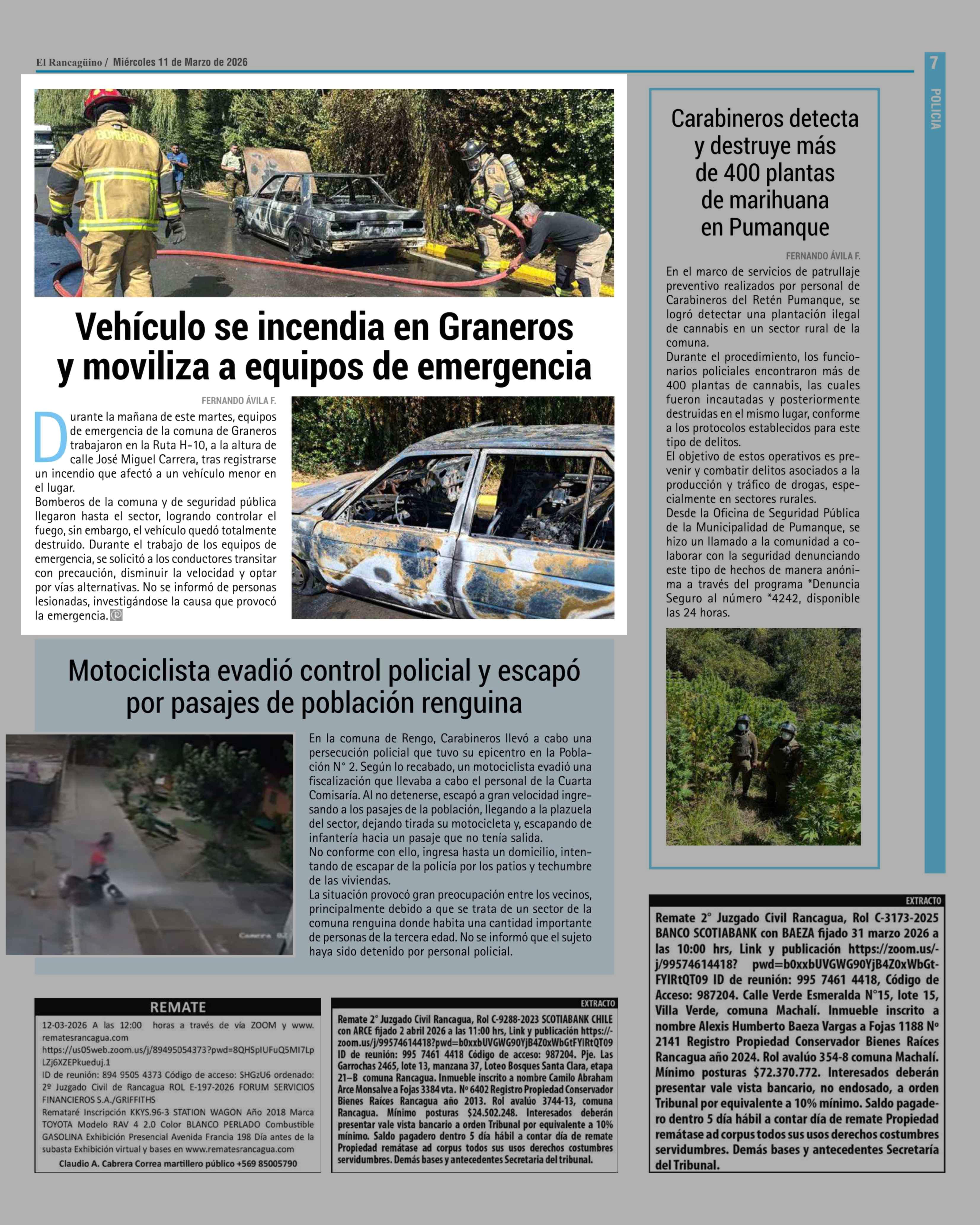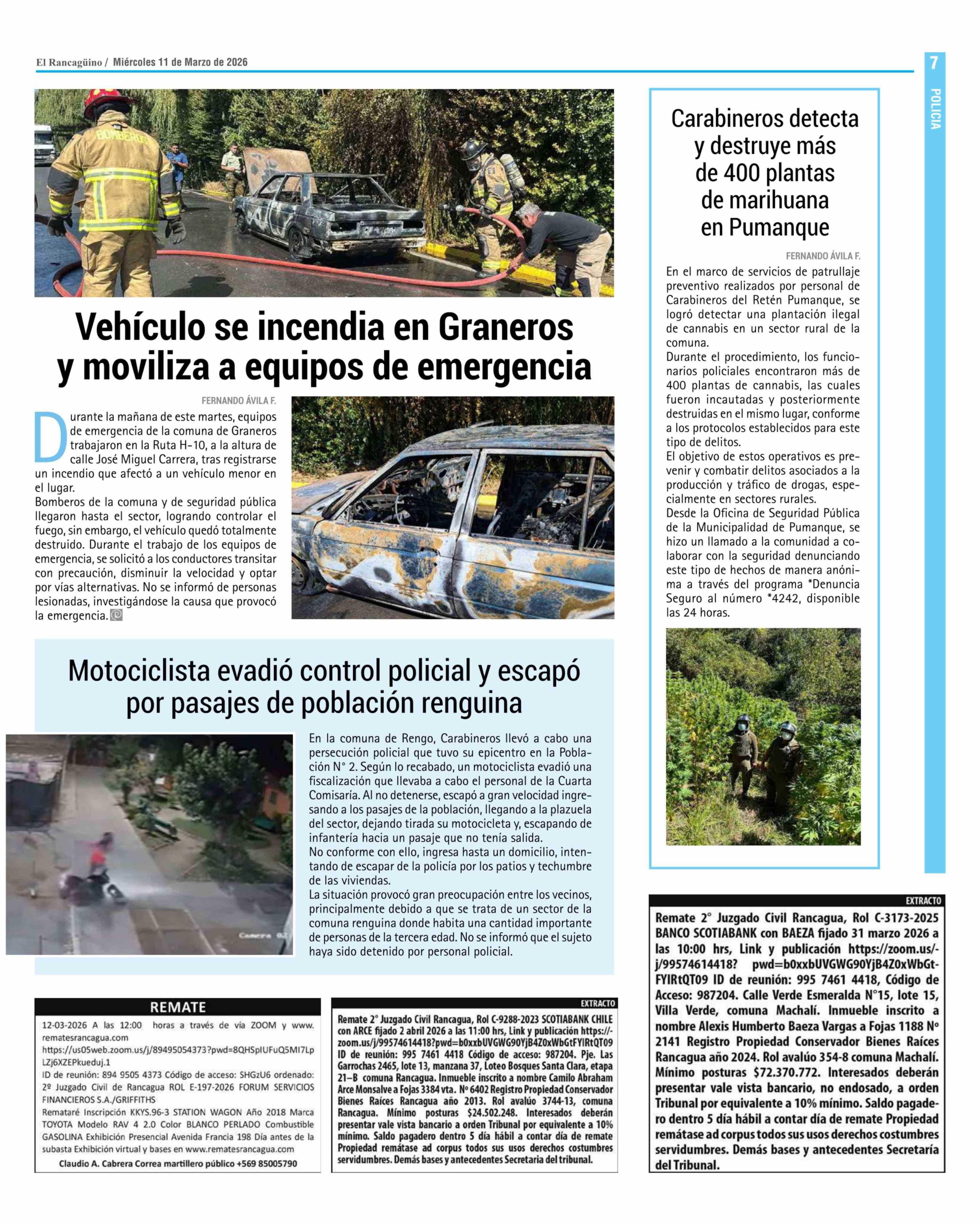 Vehículo se incendia en Graneros y moviliza a equipos de emergencia 11-03-2026 El Rancagüino |