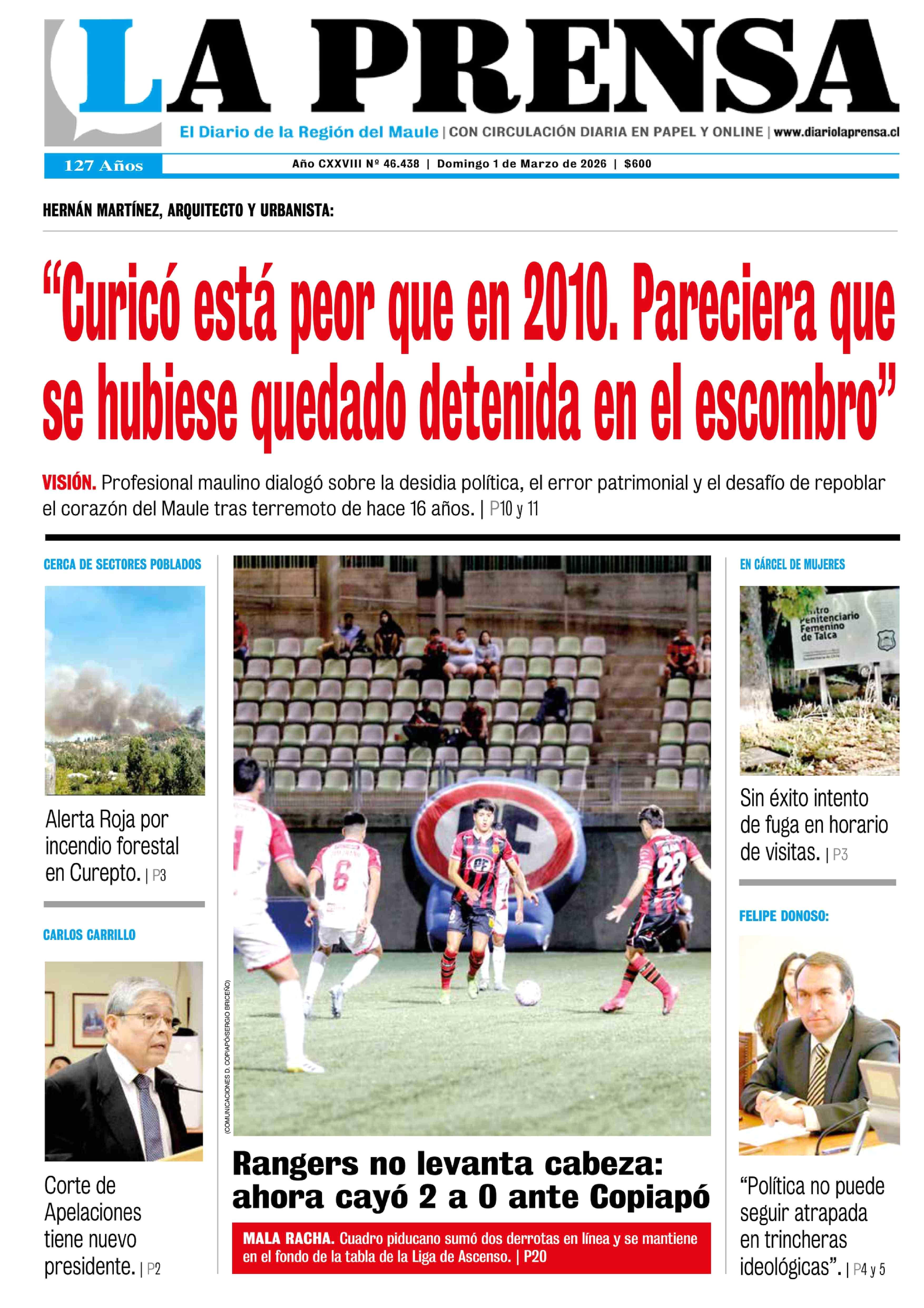 | Fecha: | 01-03-2026 | Sector: | Portada | Región: | Región del Maule |