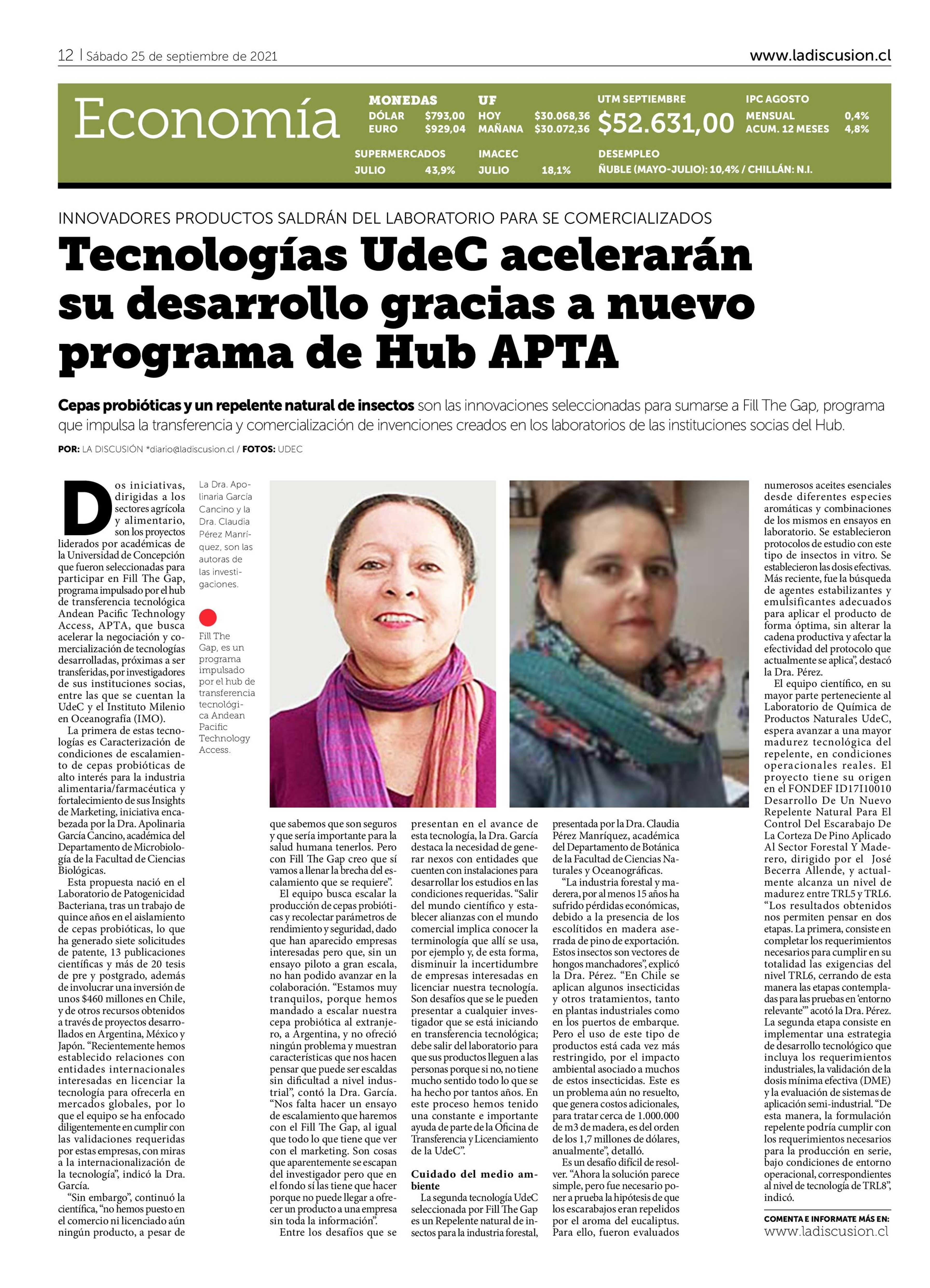 Tecnologías Ude C acelerarán su desarrollo gracias a nuevo programa de Hub APTA 25-09-2021 La Discusión |
