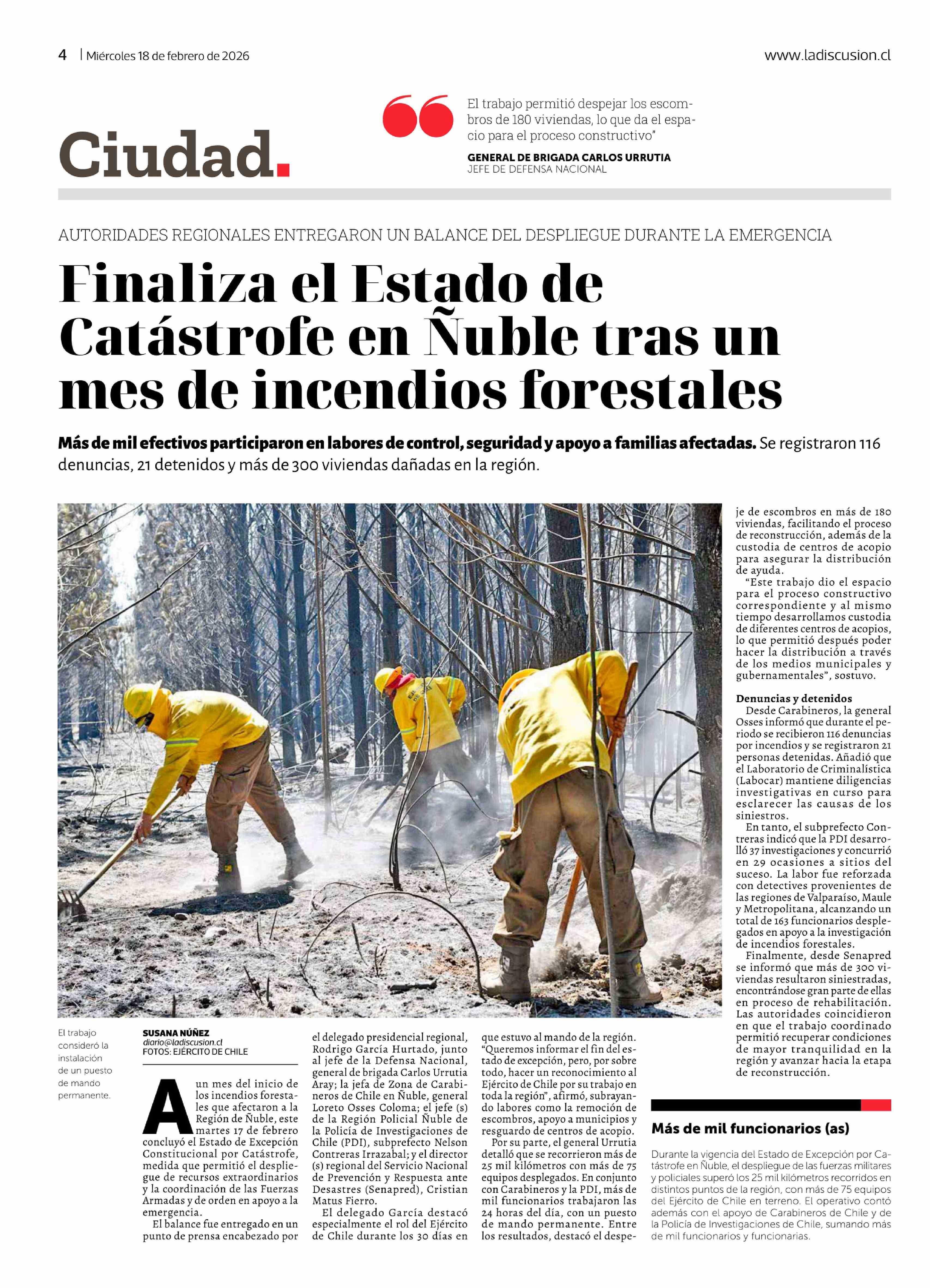 Fecha: 18-02-2026 Sector: Noticia general Región: Región del Ñuble
