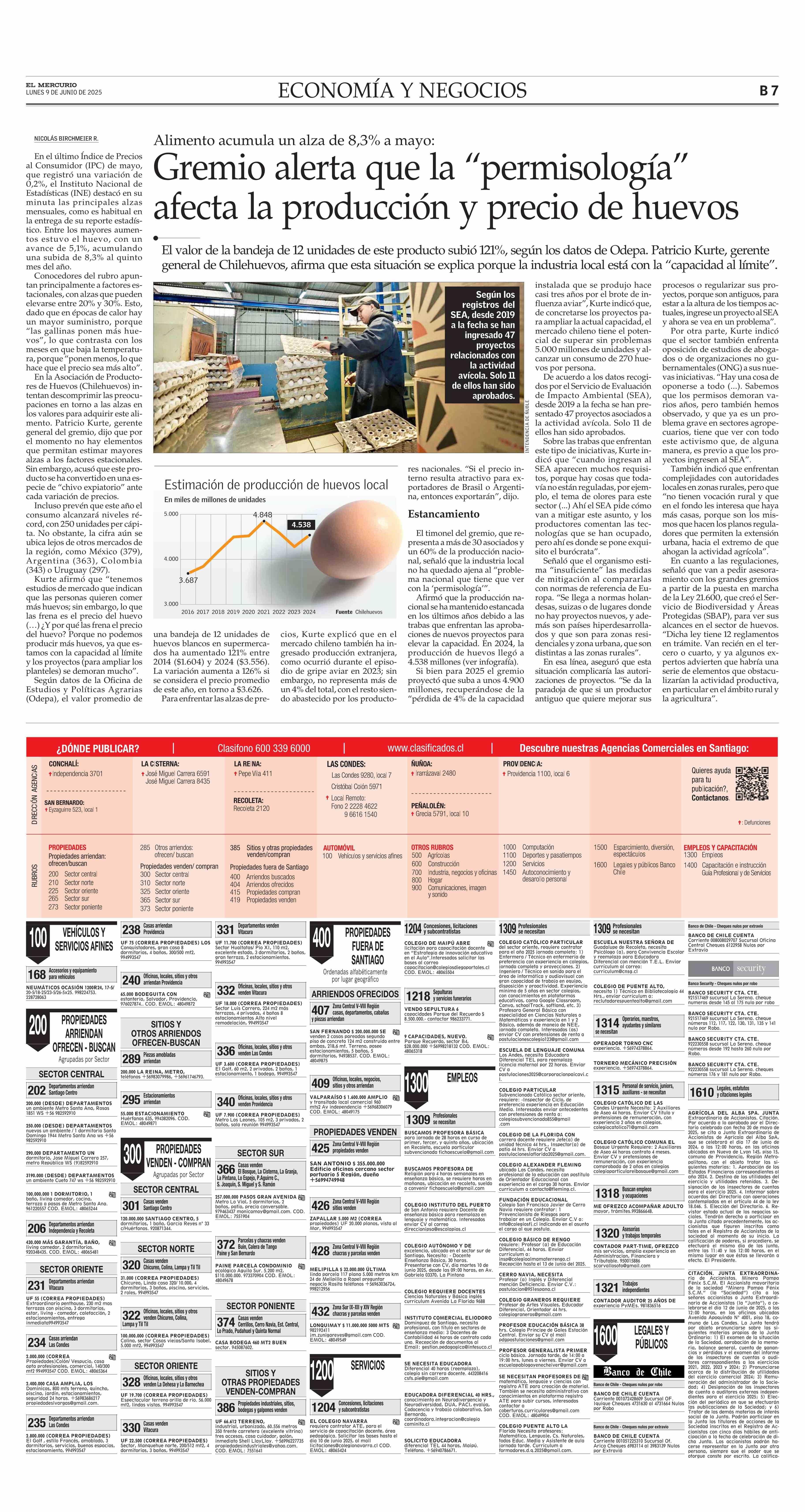 Gremio alerta que la "permisología" afecta la producción y precio de huevos 09-06-2025 El Mercurio |