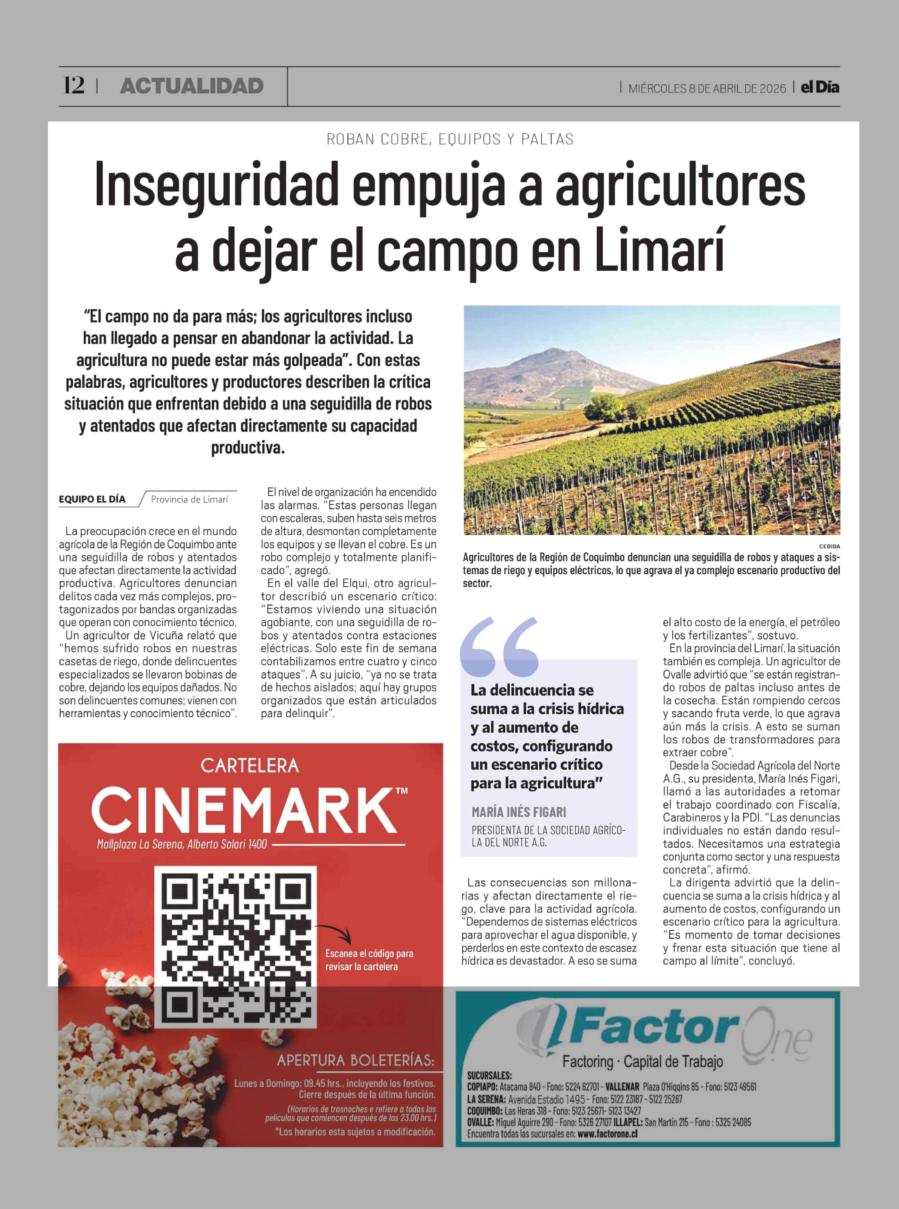 Inseguridad empuja a agricultores a dejar el campo en Limarí 08-04-2026 El Día |