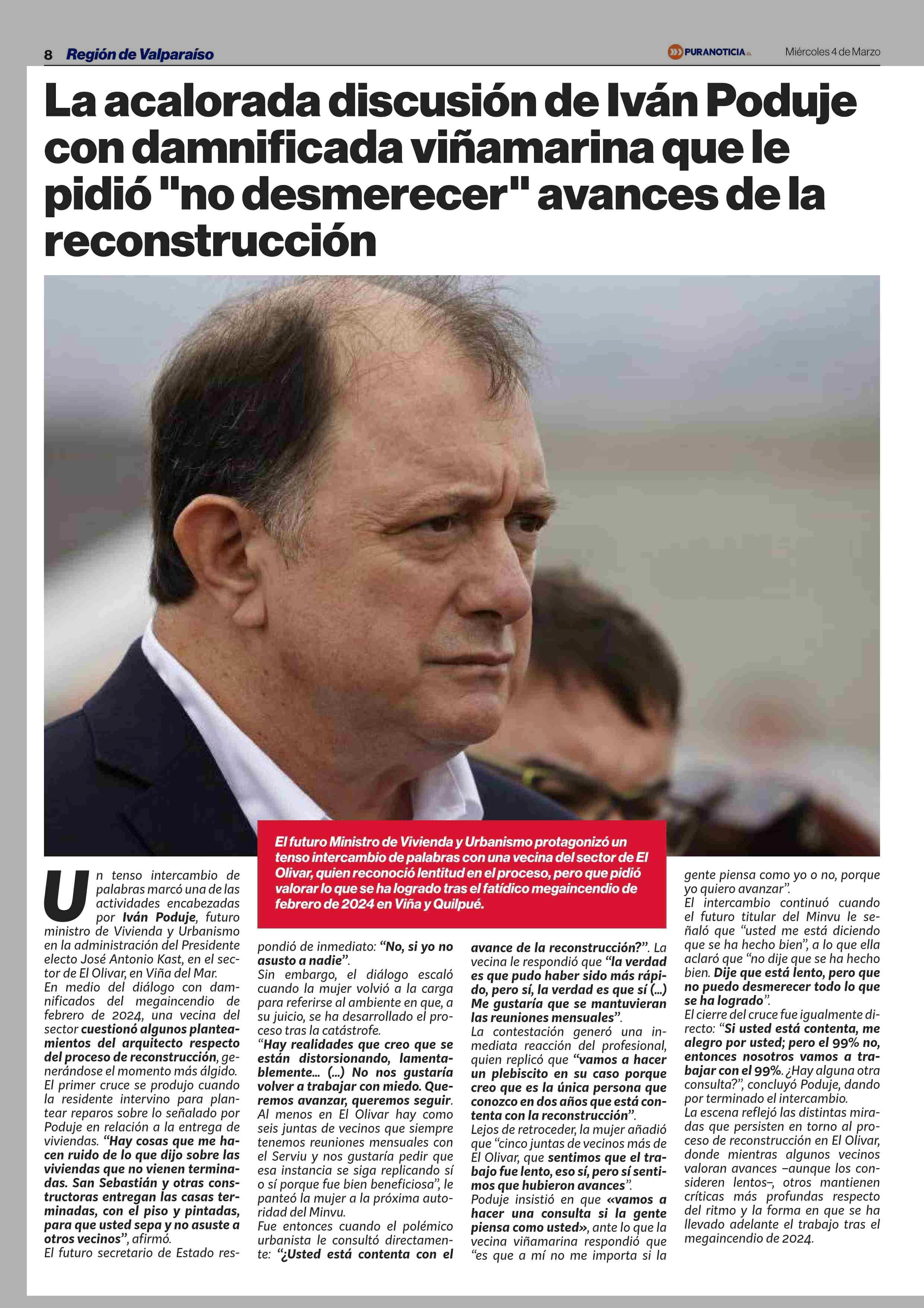 Título: La acalorada discusión de Iván Poduje con damnificada viñamarina que le pidió "no desmerecer” avances de la reconstrucción