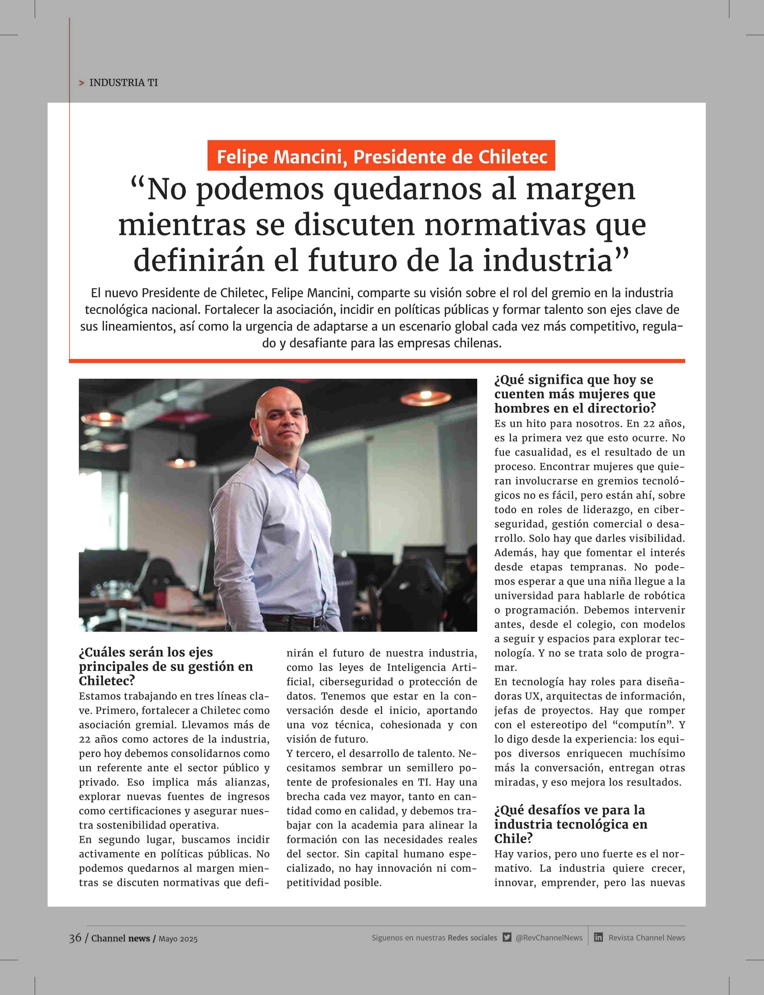 “No podemos quedarnos al margen mientras se discuten normativas que definirán el futuro de la industria” 30-05-2025 Revista Channel News |