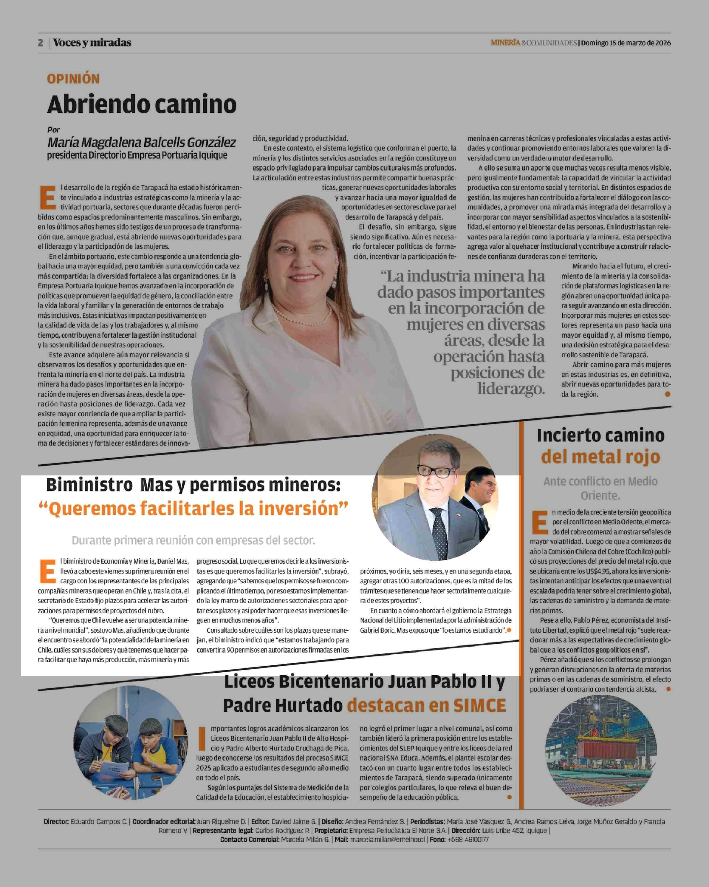 Biministro Mas y permisos mineros: “Queremos facilitarles la inversión” 15-03-2026 La Estrella de Iquique |