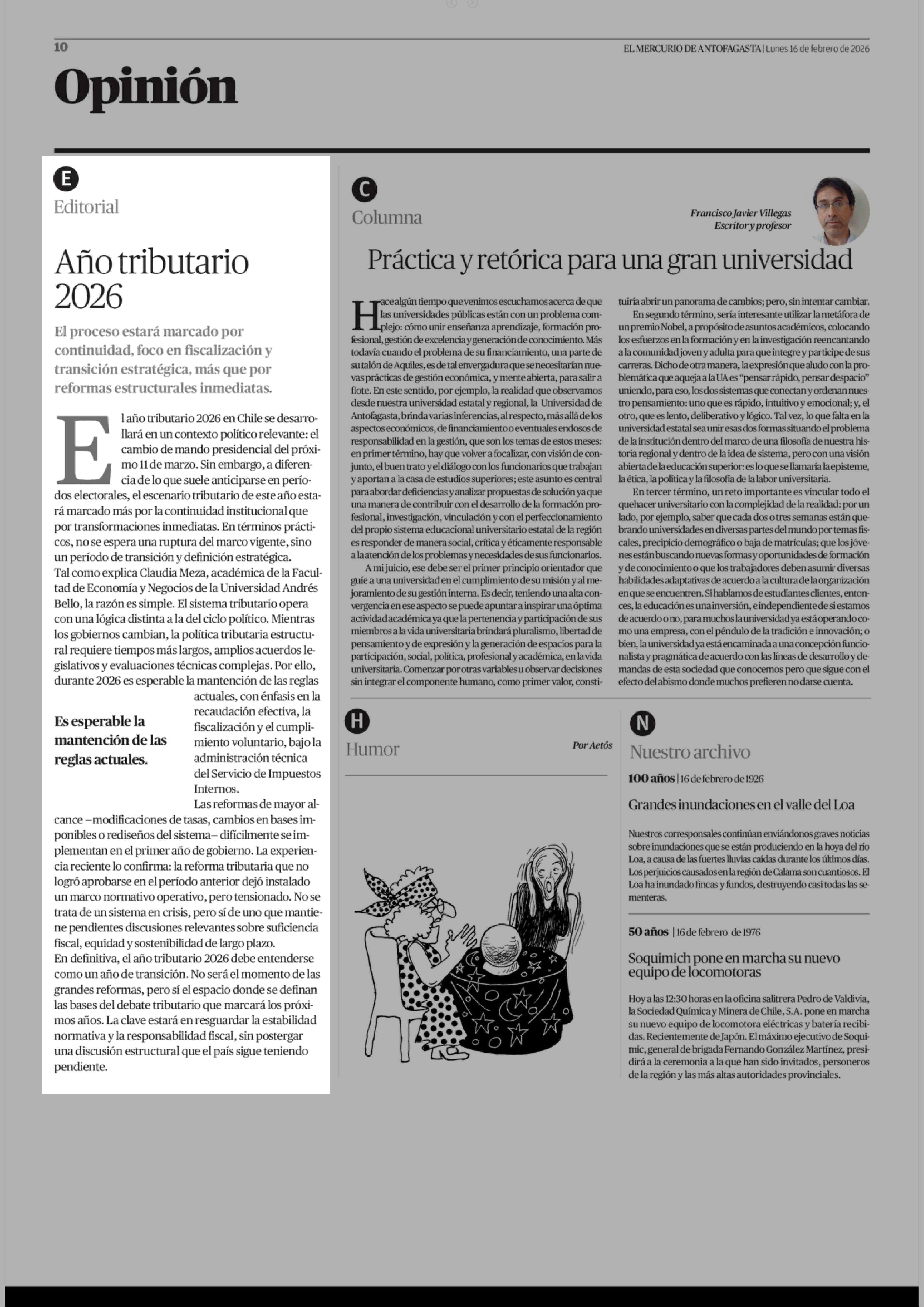 Editorial: Año tributario 2026 16-02-2026 El Mercurio de Antofagasta |
