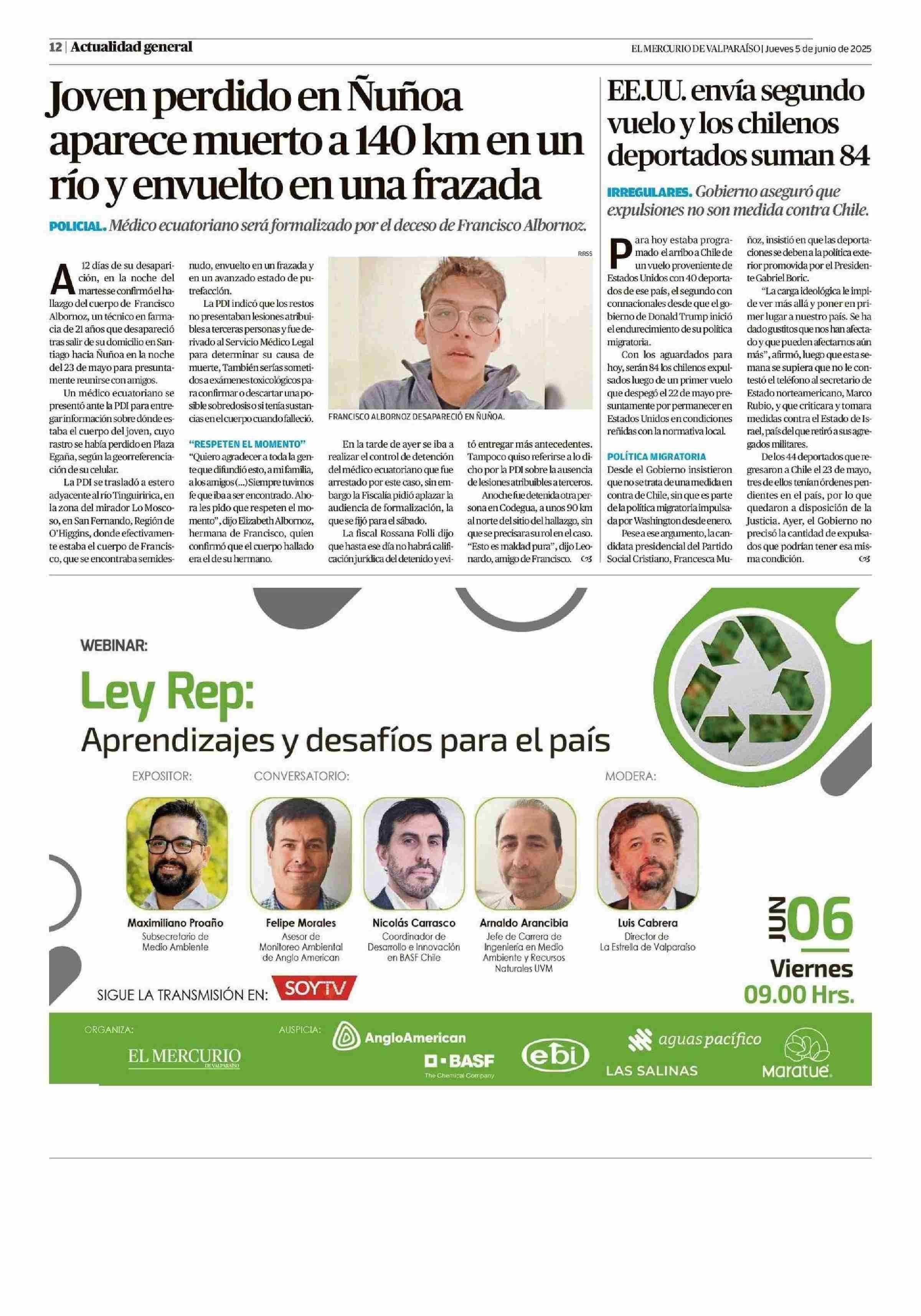 AVISO PUBLICITARIO: Ley Rep Aprendizajes y desafíos para el país 05-06-2025 El Mercurio de Valparaíso |