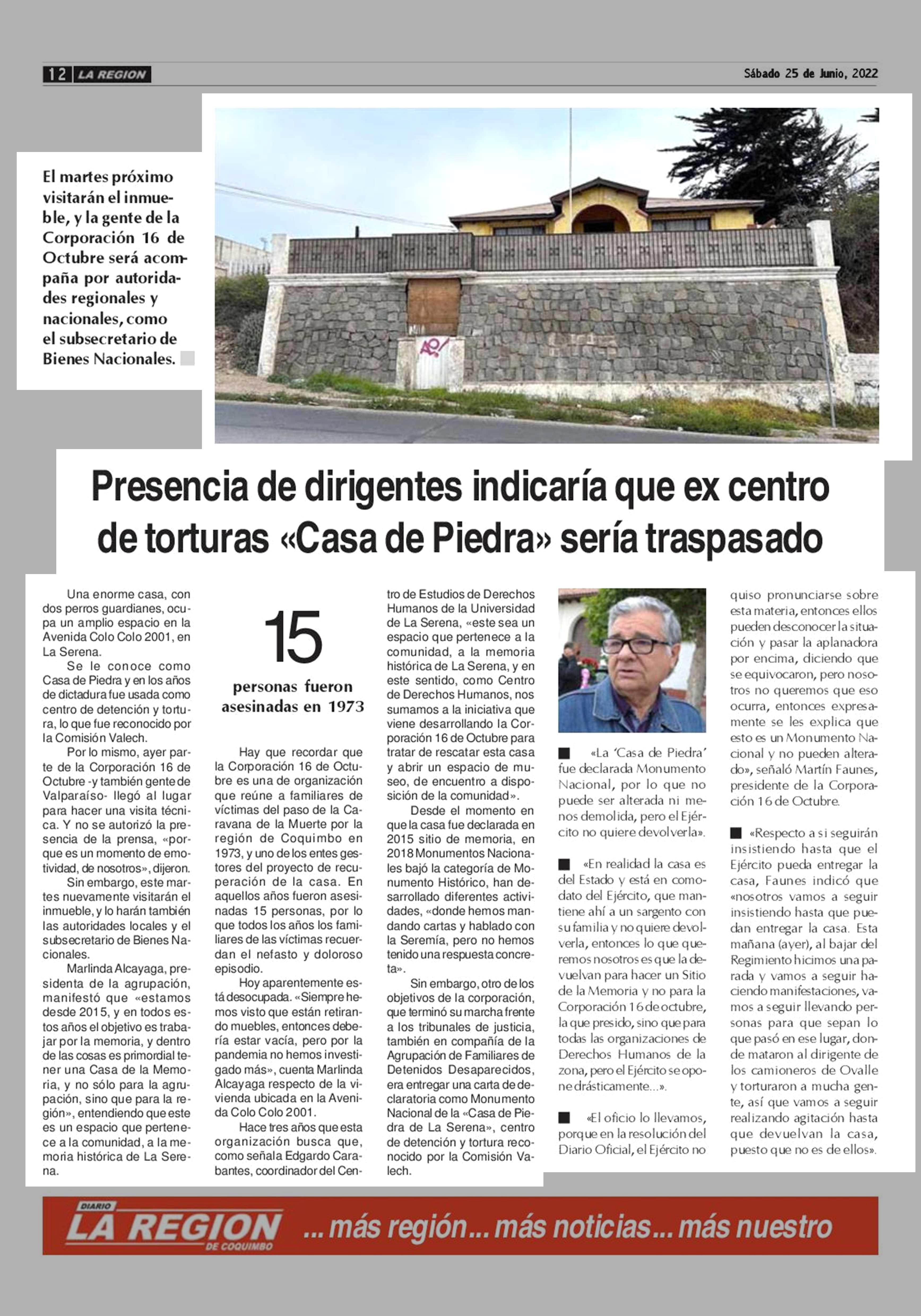 Título: Presencia de dirigentes indicaría que ex centro de torturas «Casa de Piedra» sería traspasado