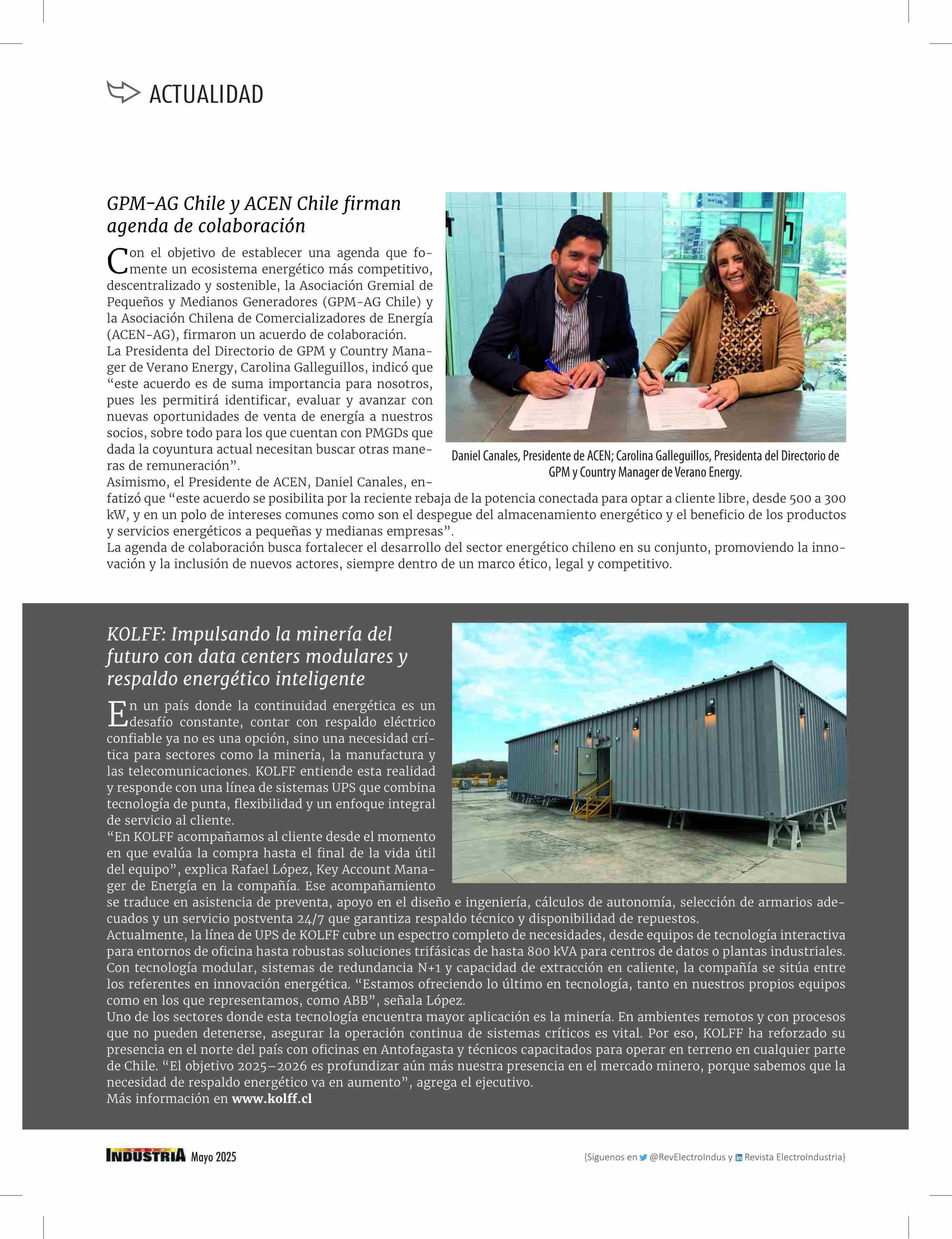 KOLFF: Impulsando la minería del futuro con data centers modulares y respaldo energético inteligente 29-05-2025 Revista Electro Industria |