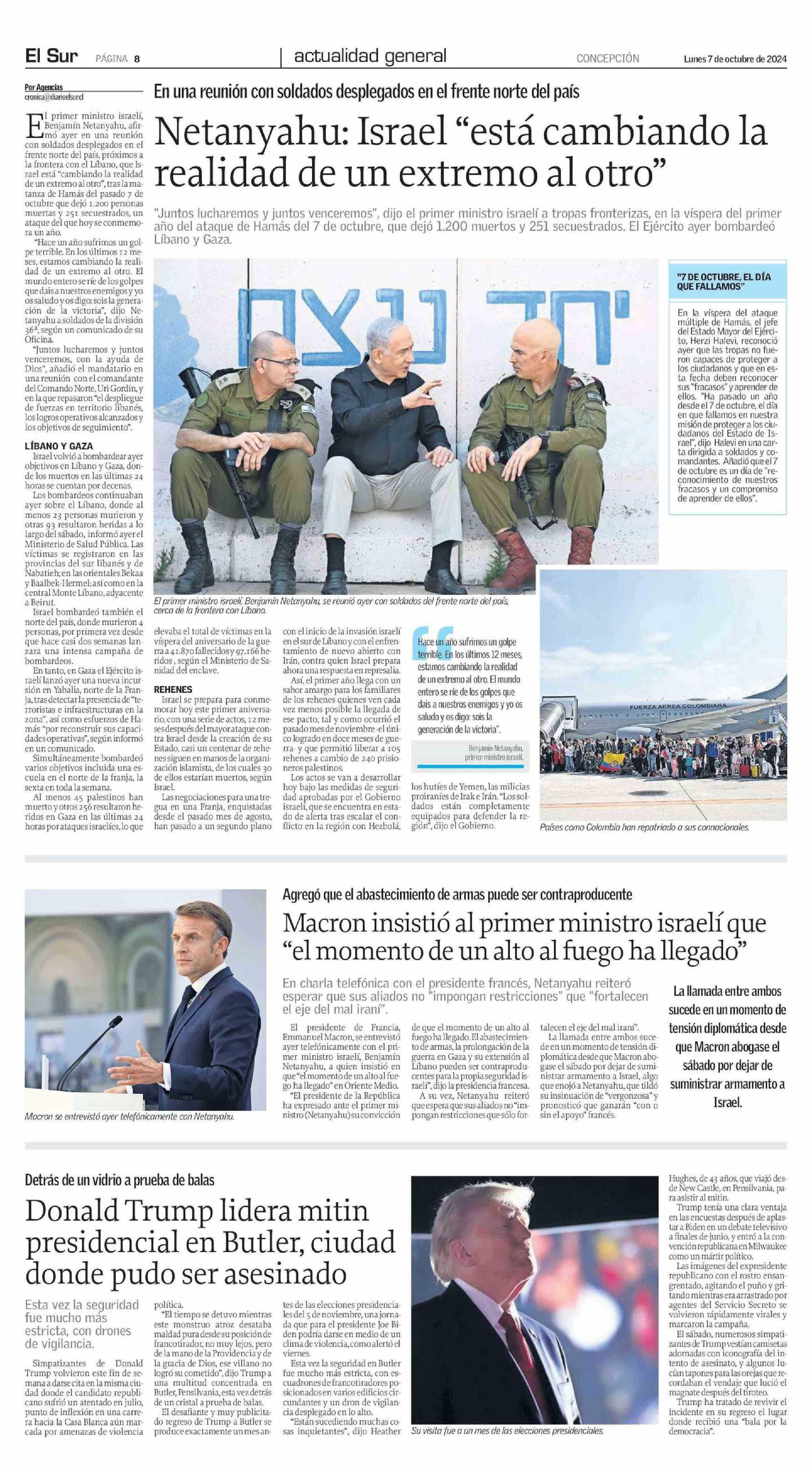 Netanyahu: Israel “está cambiando la realidad de un extremo al otro” 07-10-2024 El Sur |