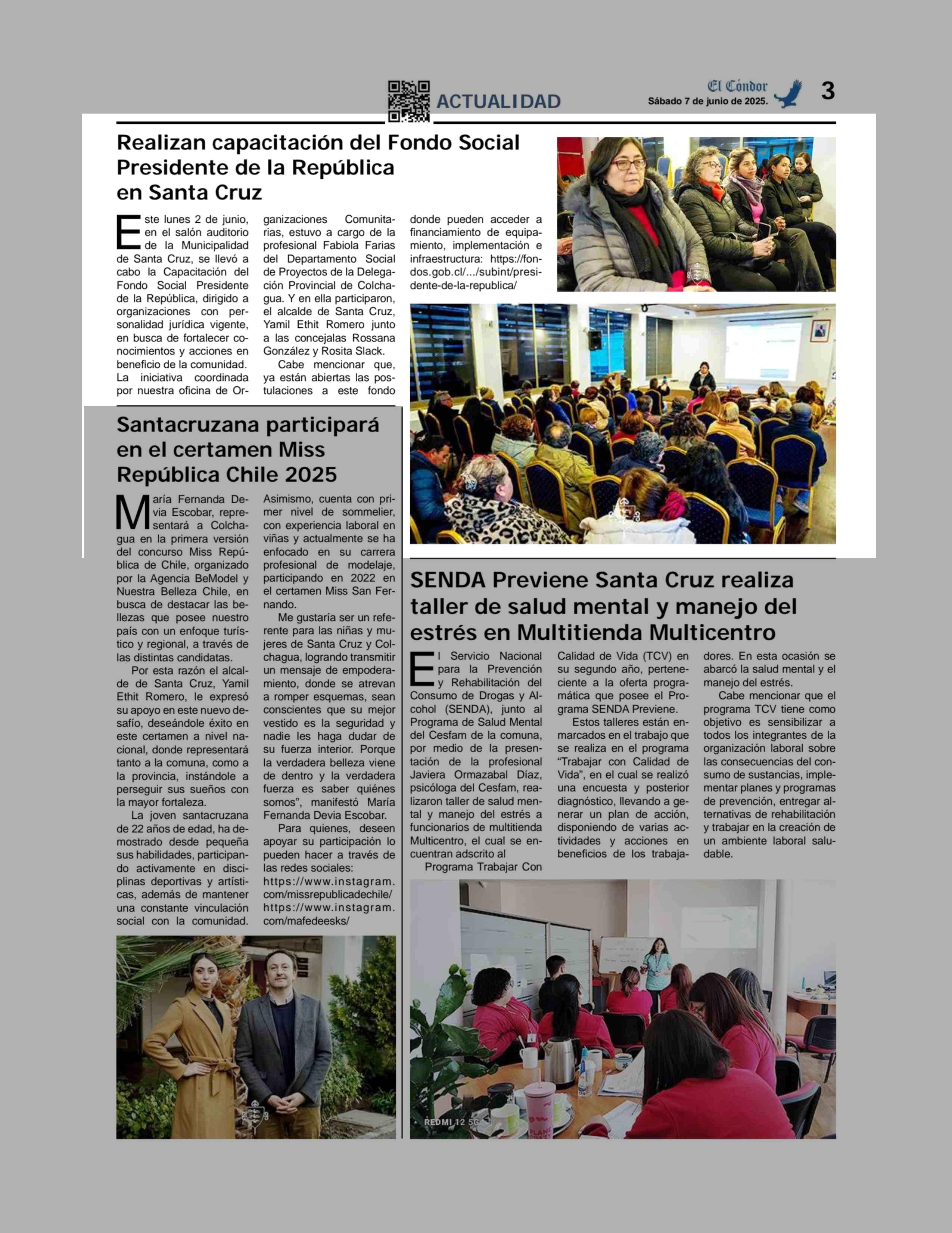 Realizan capacitación del Fondo Social Presidente de la República en Santa Cruz 07-06-2025 Diario El Cóndor |