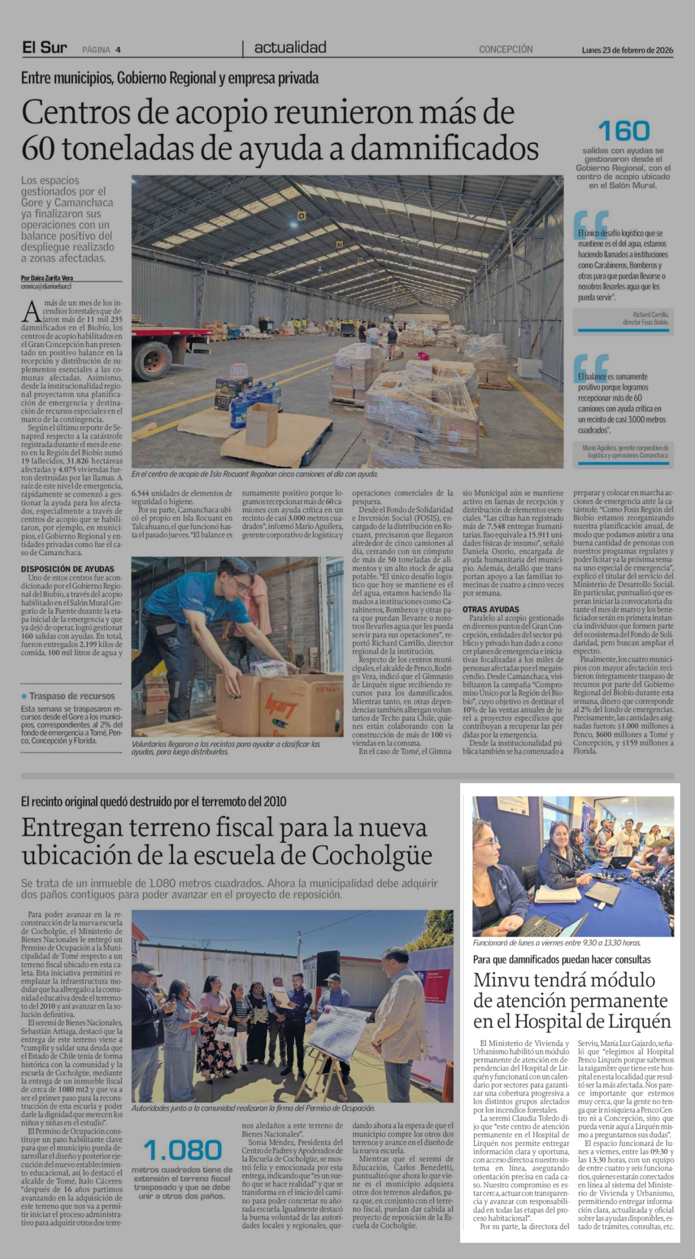 | Fecha: | 23-02-2026 | Sector: | Noticia general | Región: | Región del Bío-Bío |