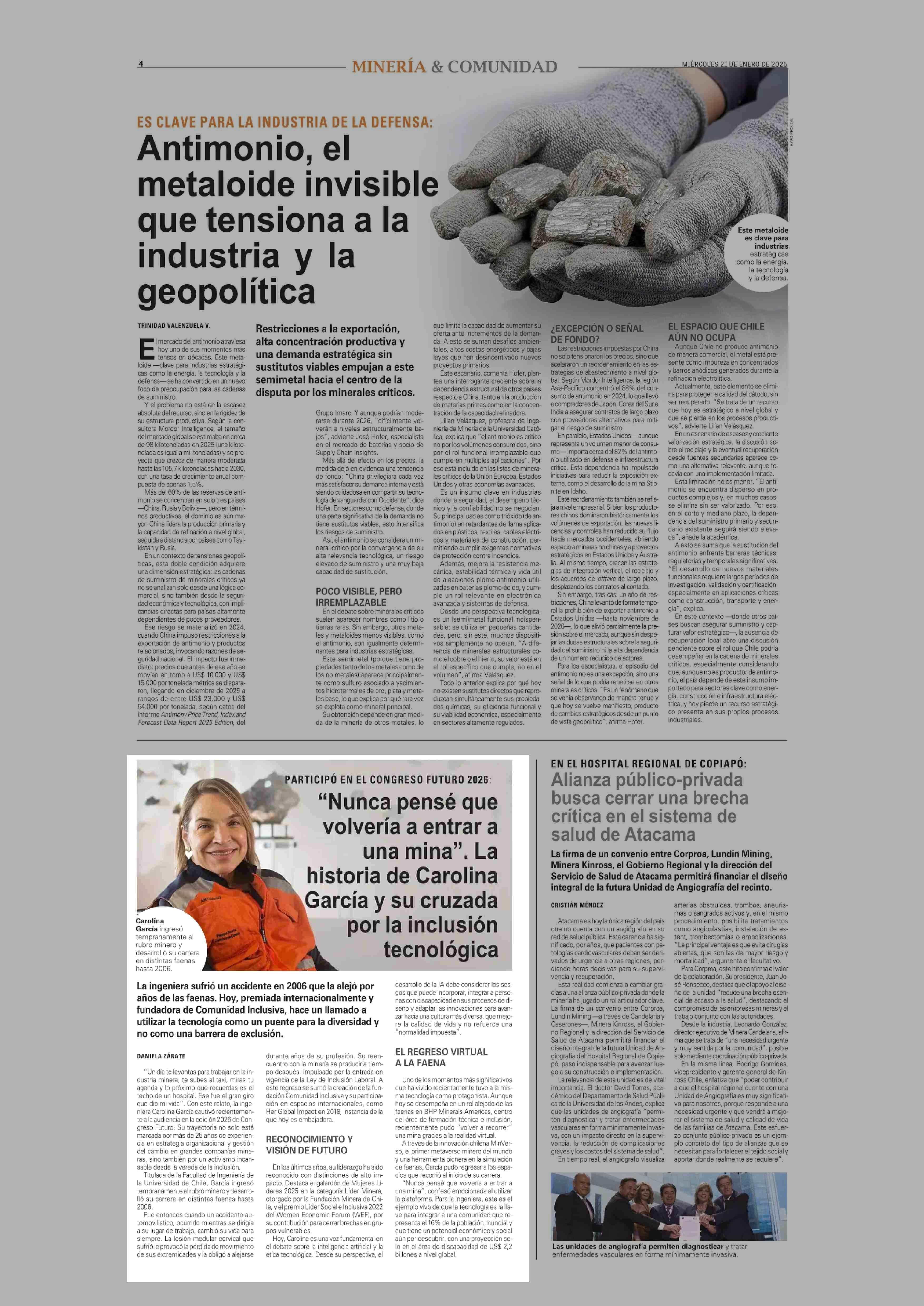 “Nunca pensé que volvería a entrar a una mina”. La historia de Carolina García y su cruzada por la inclusión tecnológica 21-01-2026 El Mercurio |
