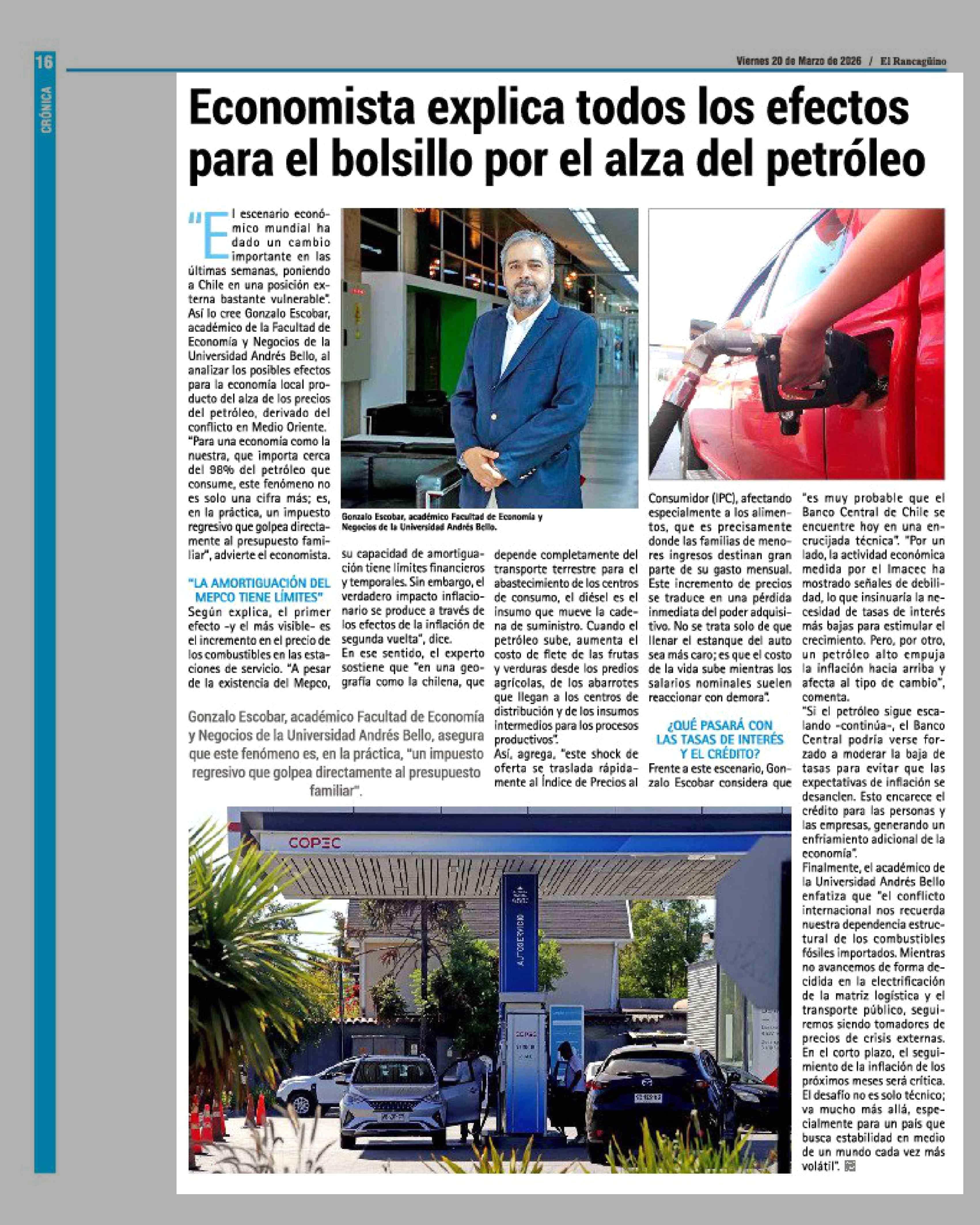 Economista explica todos los efectos para el bolsillo por el alza del petróleo 20-03-2026 El Rancagüino |