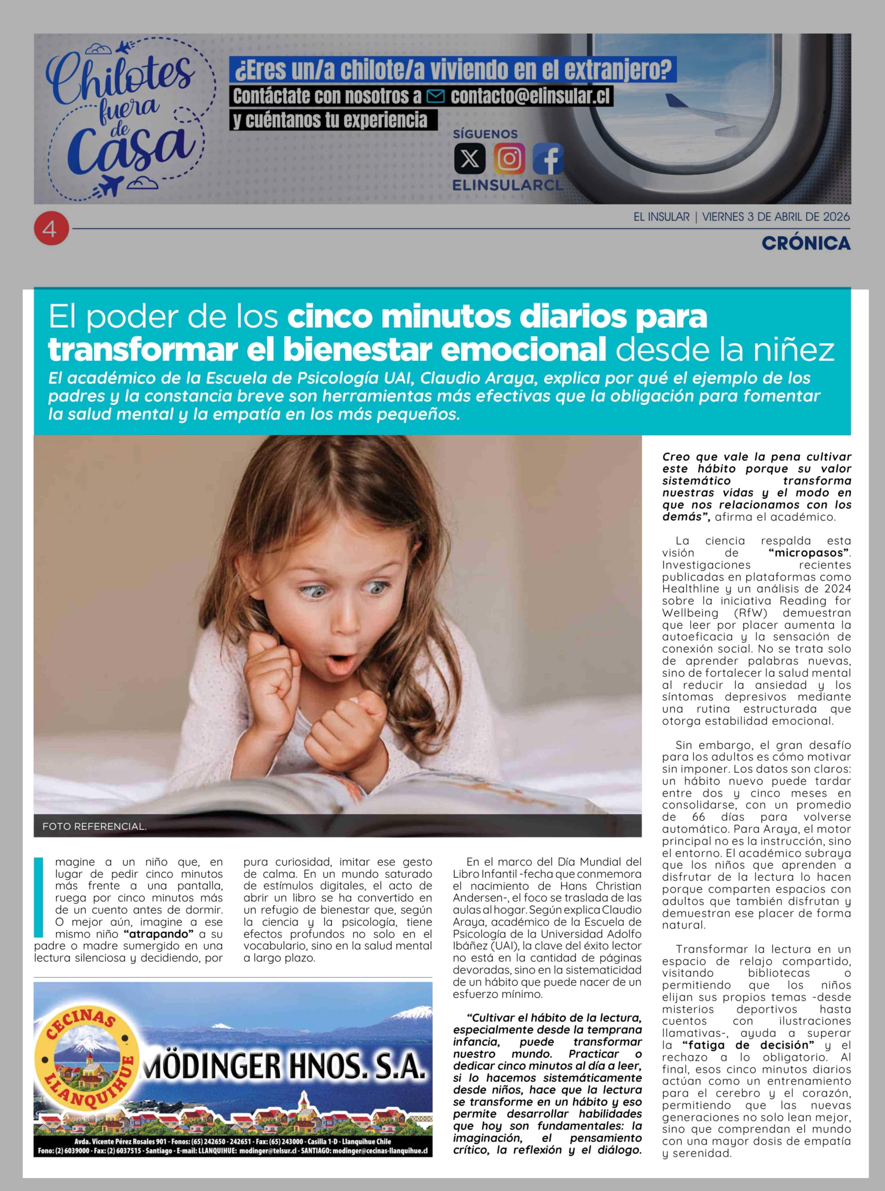 El poder de los cinco minutos diarios para transformar el bienestar emocional desde la niñez 03-04-2026 El Insular |