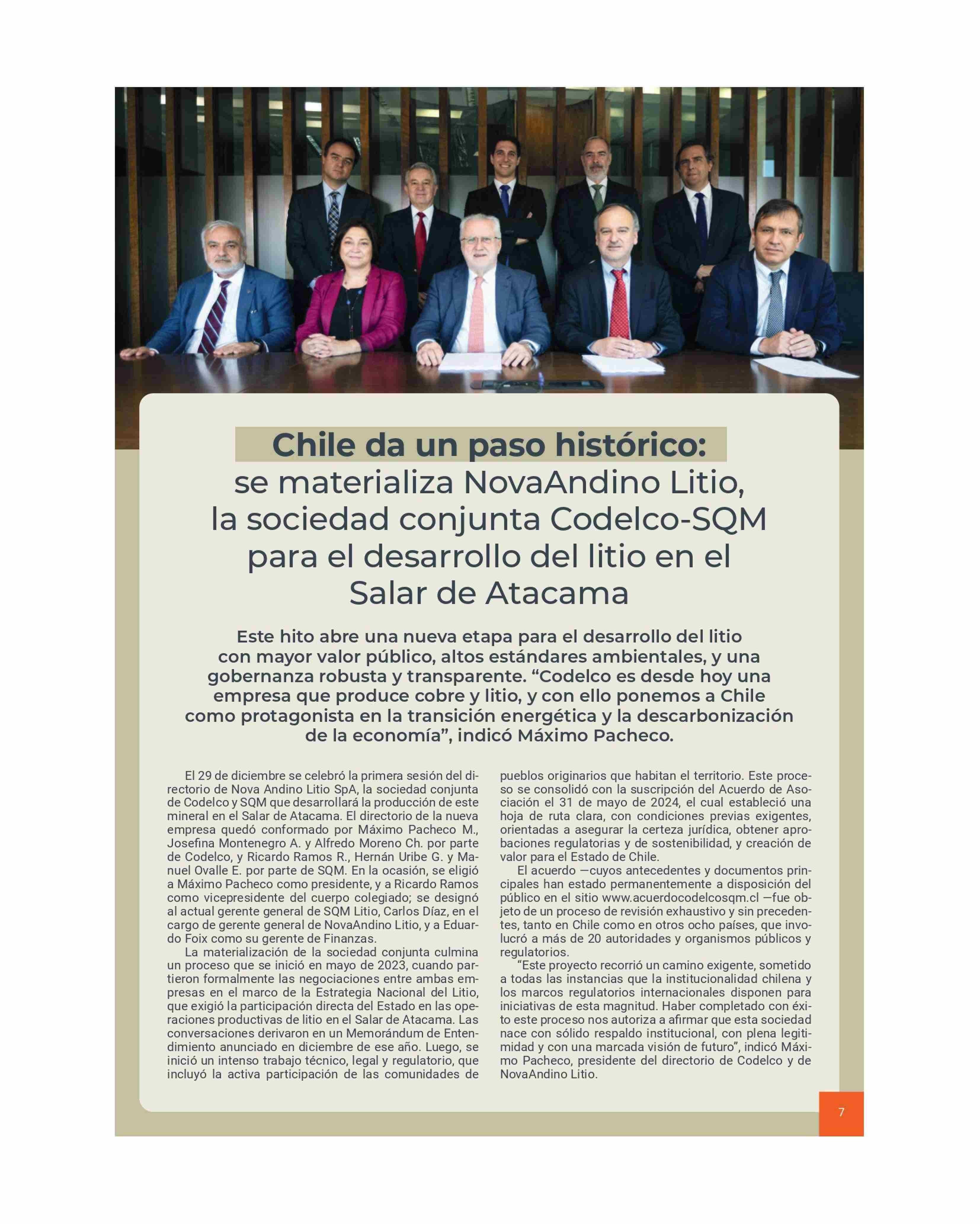 | Título: | Chile da un paso histórico: se materializa NovaAndino Litio, la sociedad conjunta Codelco-SQM para el desarrollo del litio en el Salar de Atacama |