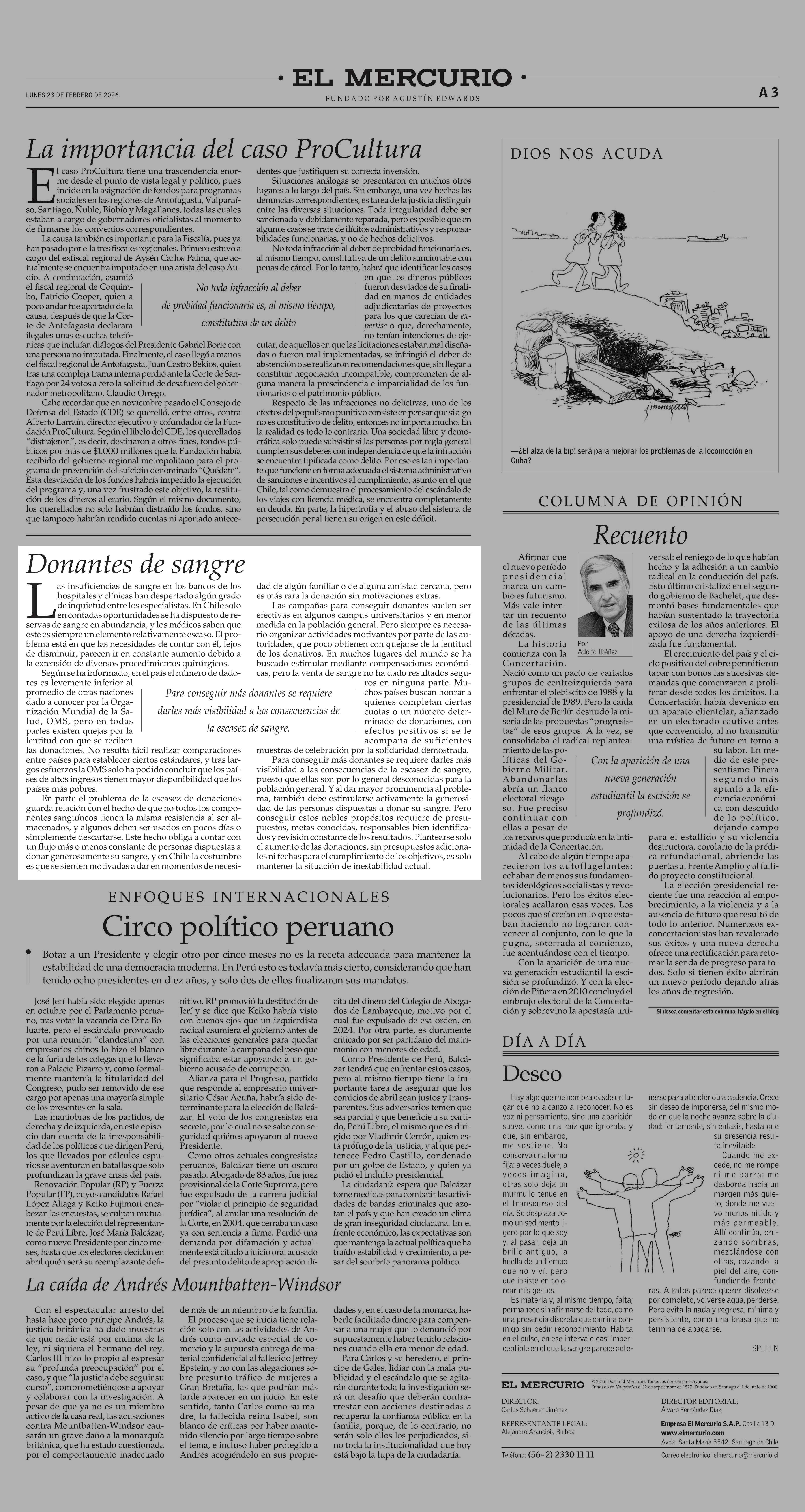 Editorial: Donantes de sangre 23-02-2026 El Mercurio |
