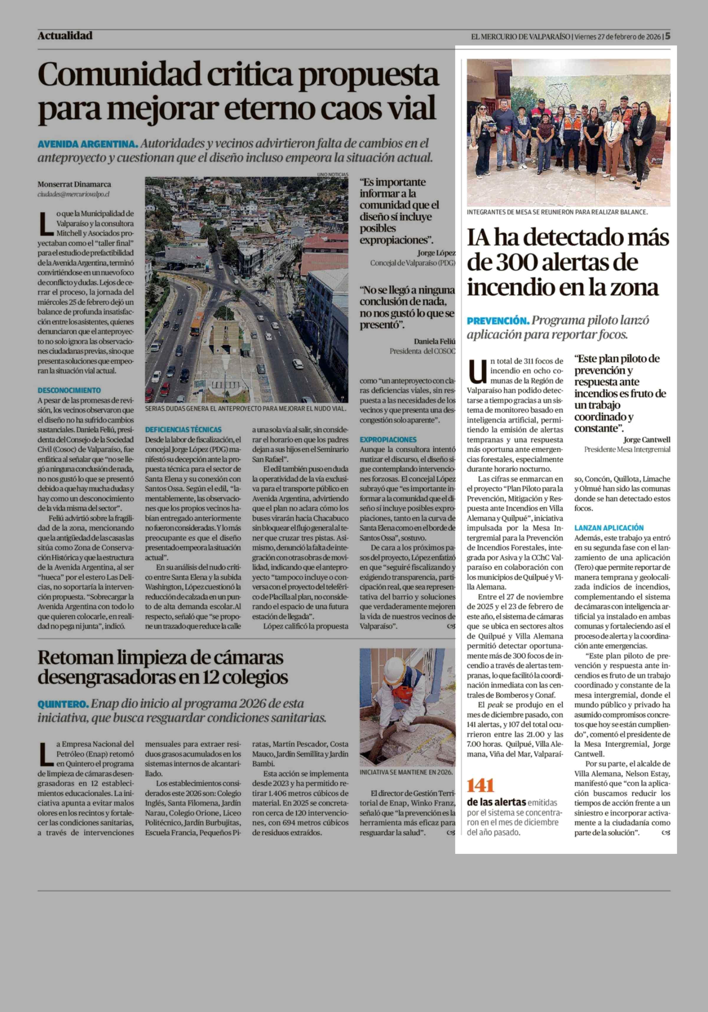 IA ha detectado más de 300 alertas de incendio en la zona 27-02-2026 El Mercurio de Valparaíso |