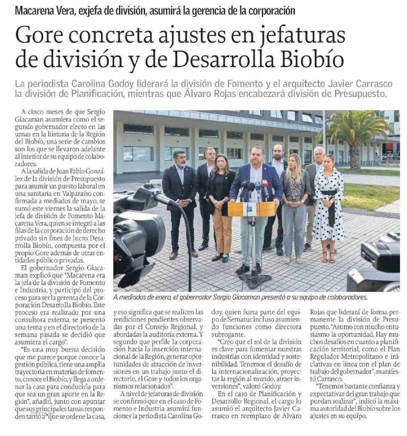 Gore concreta ajustes en jefaturas de división y de Desarrolla Biobío 10-06-2025 El Sur |