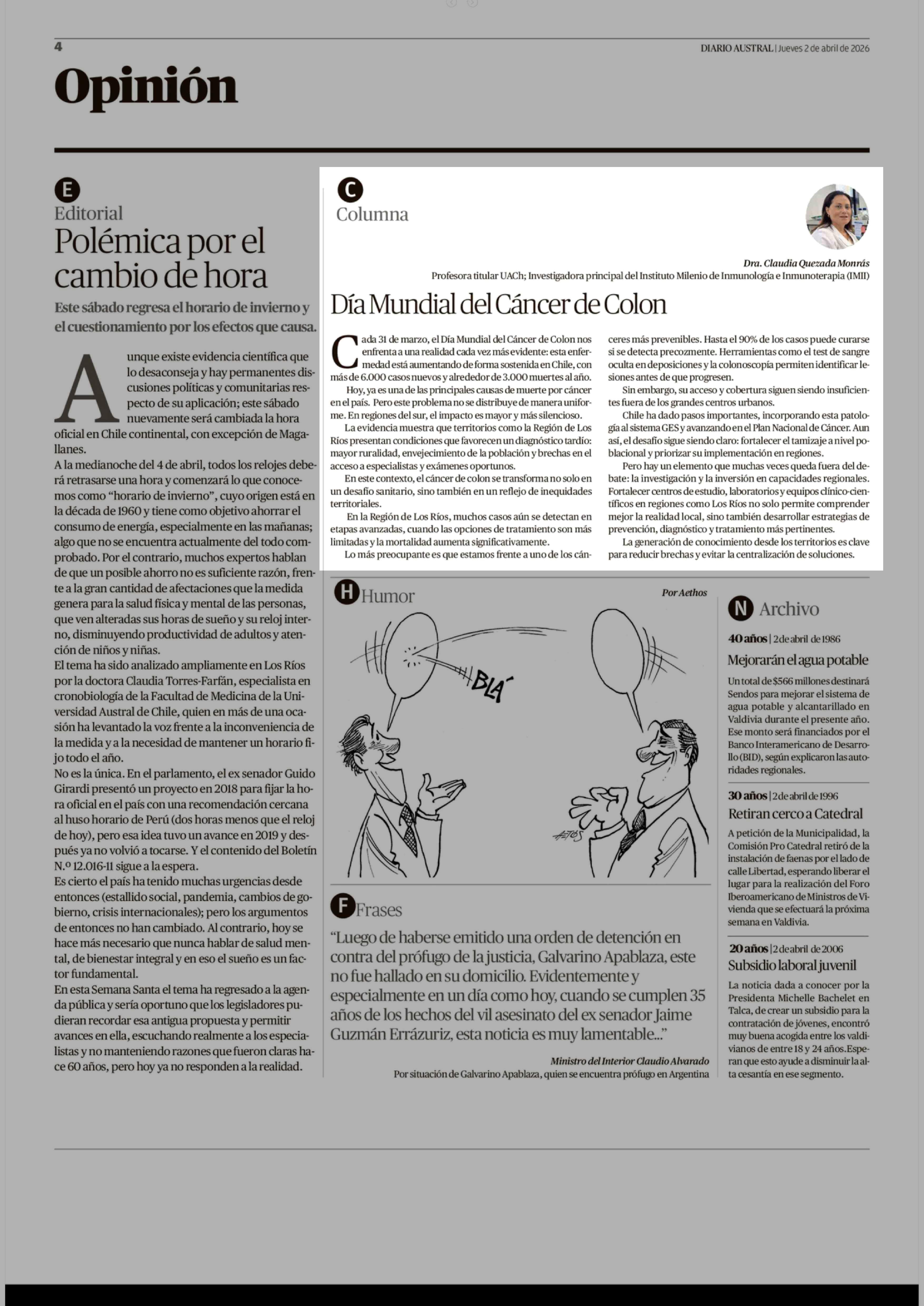 Fecha: 02-04-2026 Sector: Columnas de Opinión Región: Región de Los Ríos