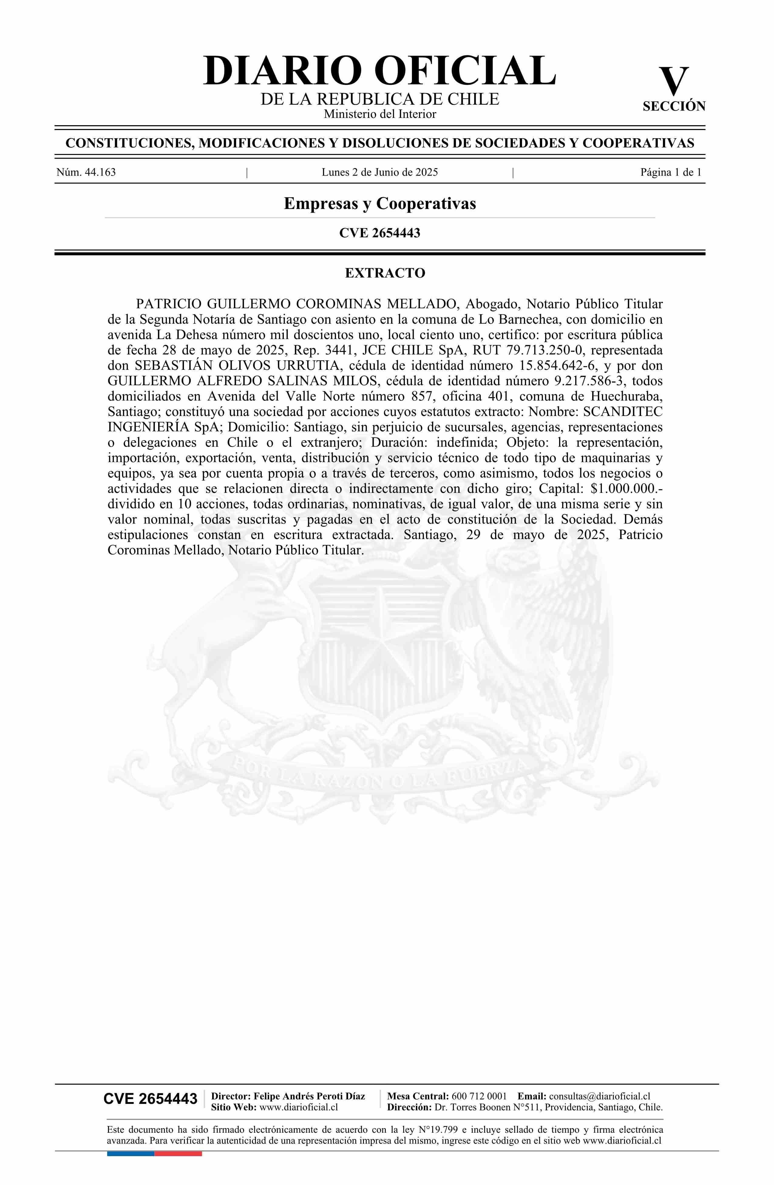 SCANDITEC INGENIERÍA SpA 02-06-2025 Diario Oficial Edición Electrónica |