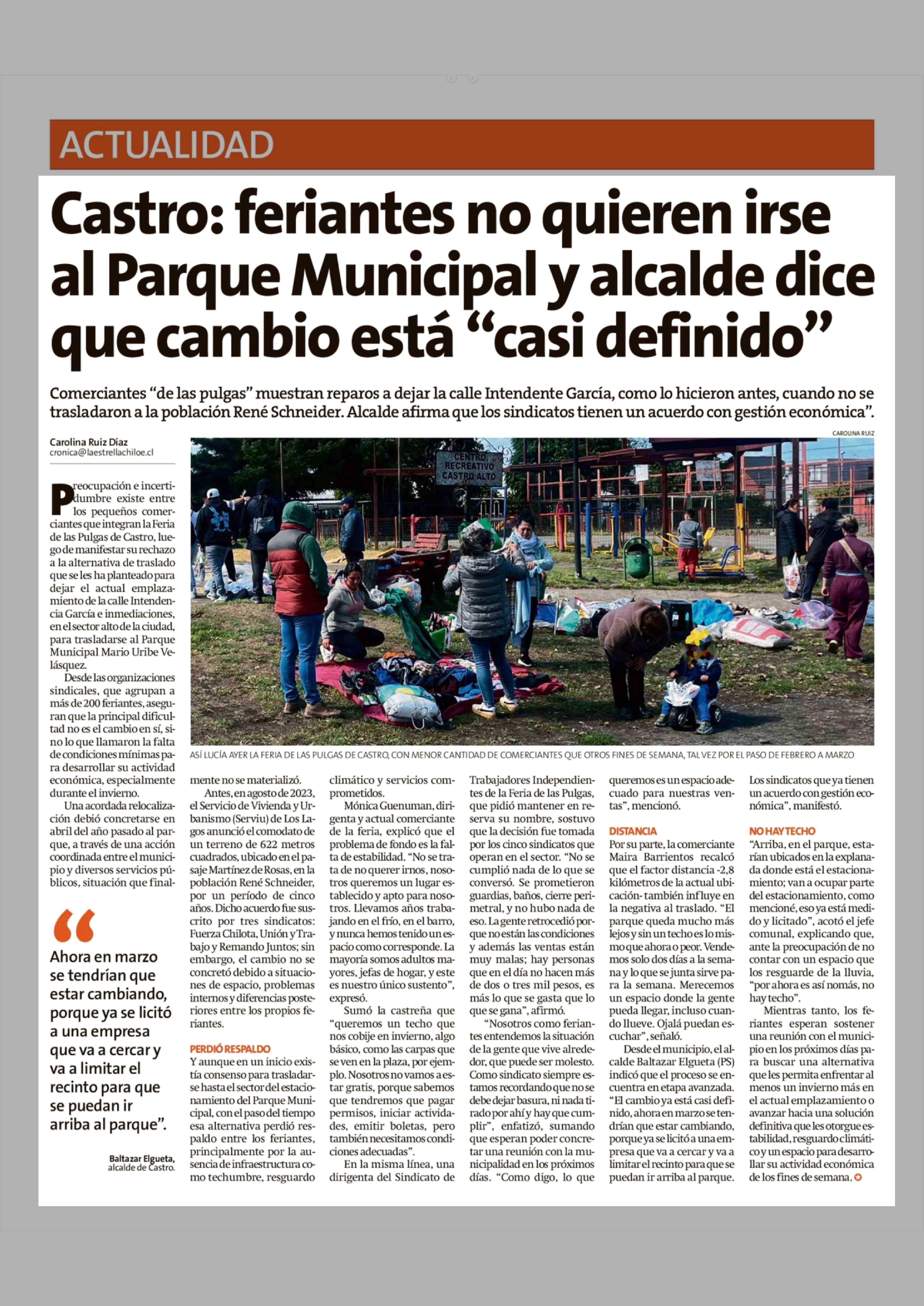 Castro: feriantes no quieren irse al Parque Municipal y alcalde dice que cambio está "casi definido" 02-03-2026 La Estrella de Chiloé |