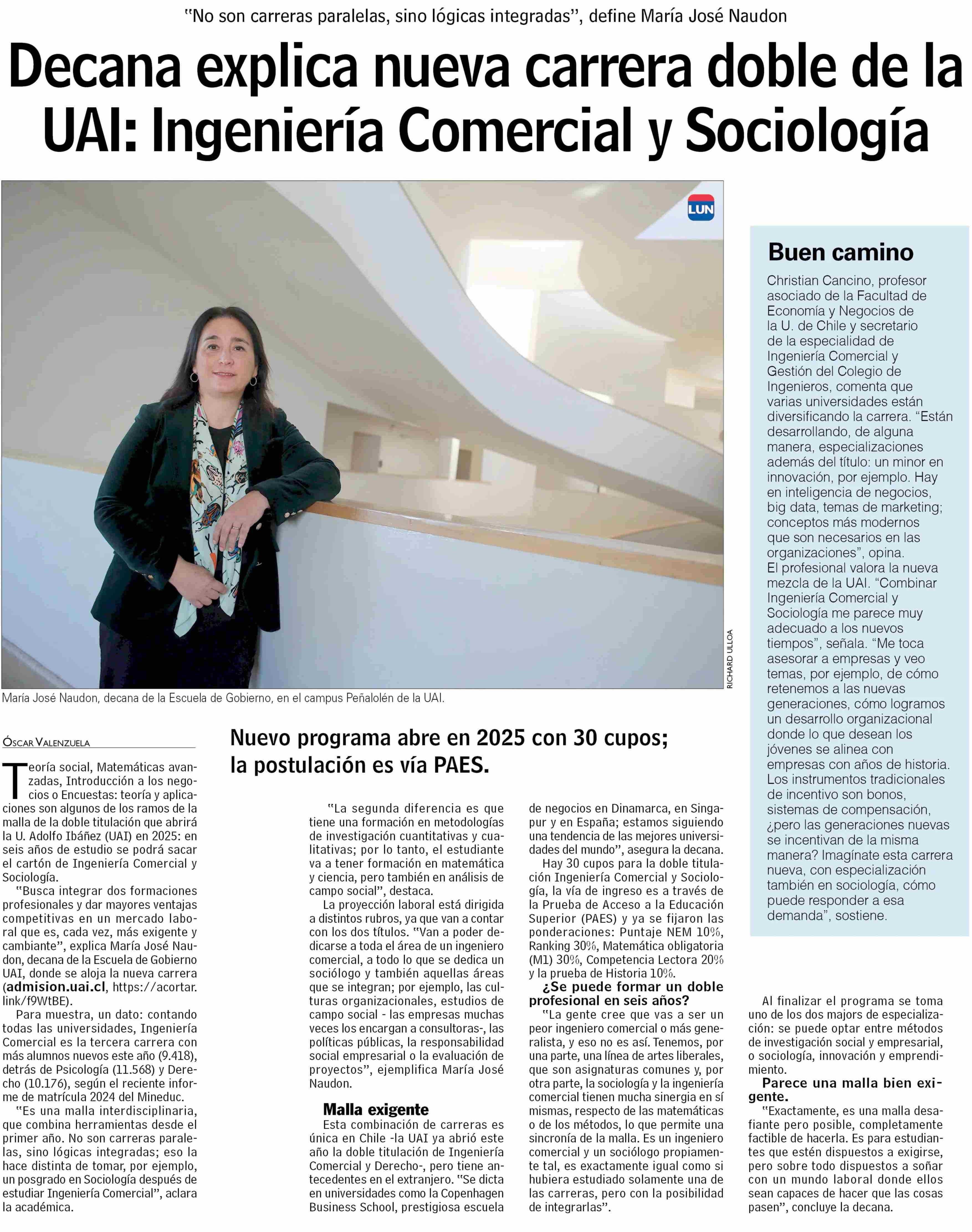 Decana explica nueva carrera doble de la UAI: Ingenieria Comercial y Sociología 23-07-2024 Las Últimas Noticias |