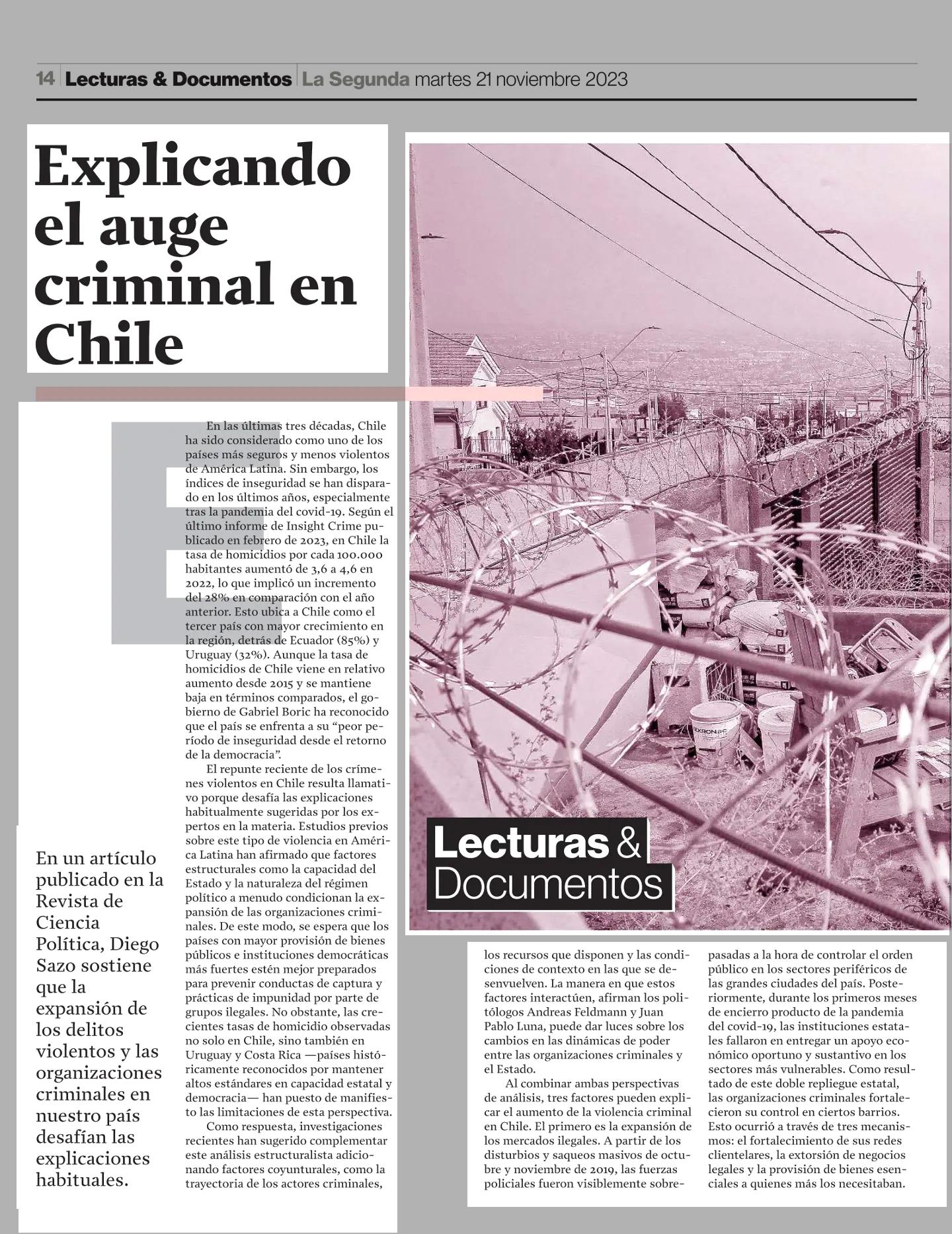 Explicando el auge criminal en Chile 21-11-2023 La Segunda |