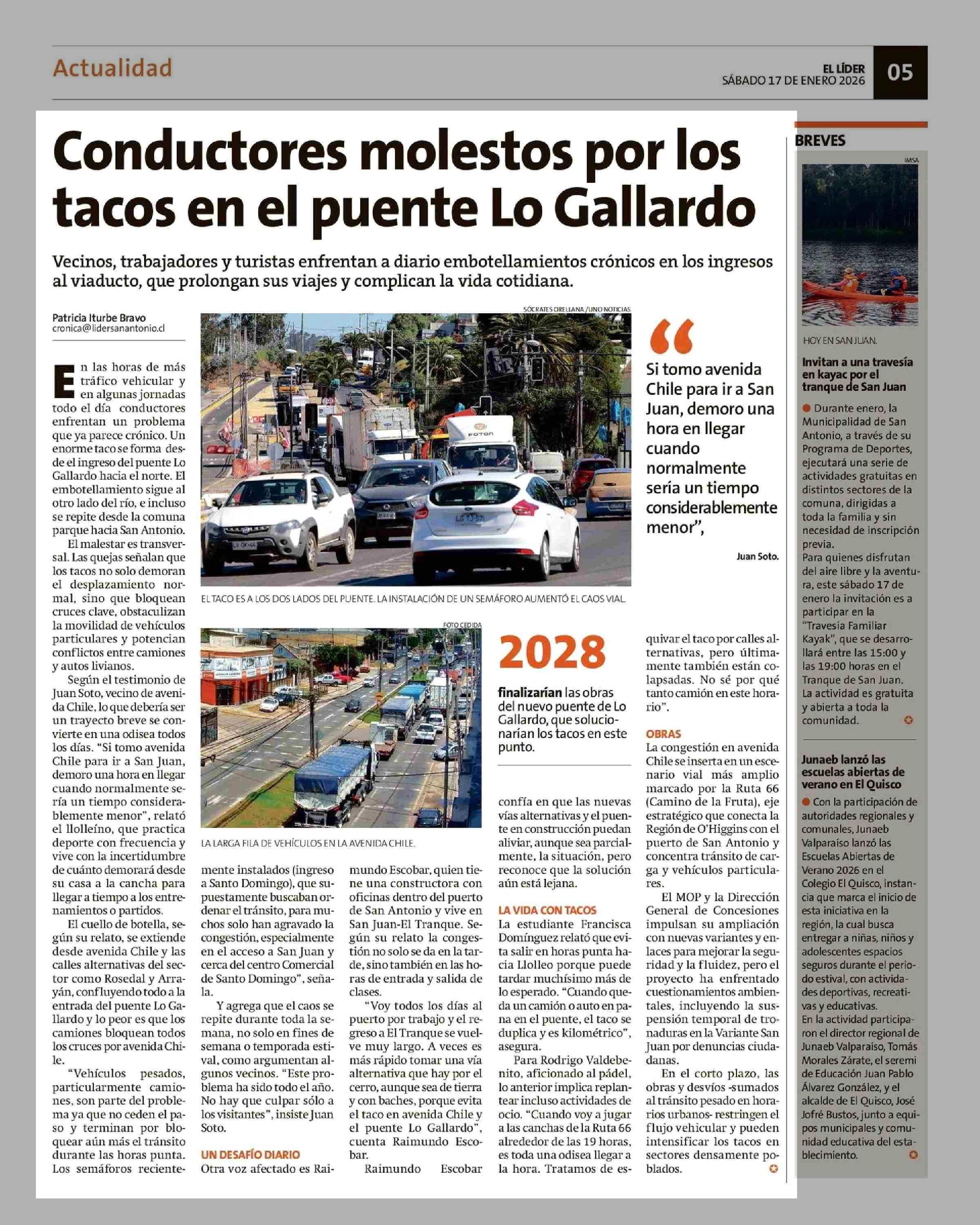 Conductores molestos por los tacos en el puente Lo Gallardo 17-01-2026 El Líder |
