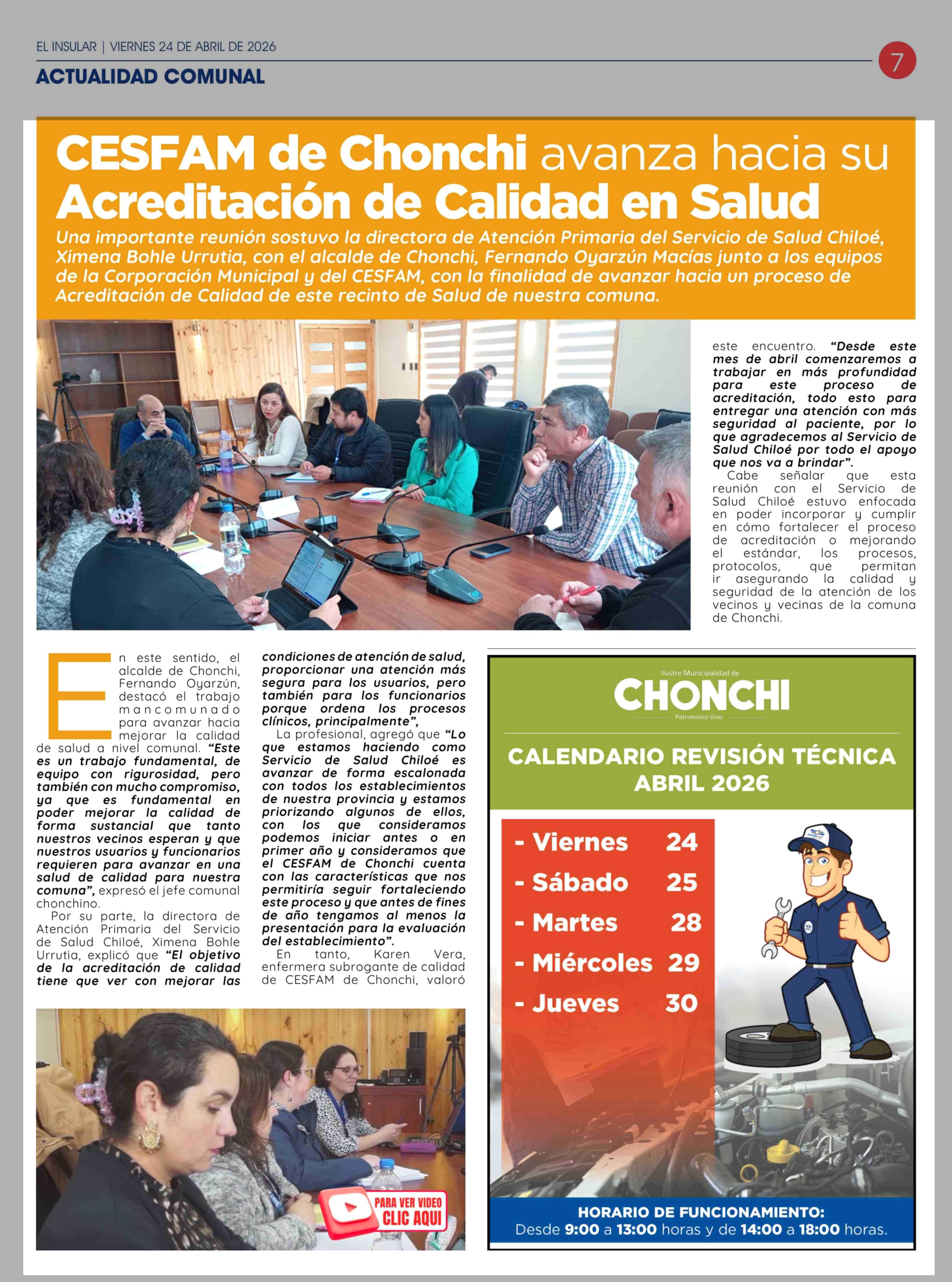 Título: CESFAM de Chonchi avanza hacia su Acreditación de Calidad en Salud