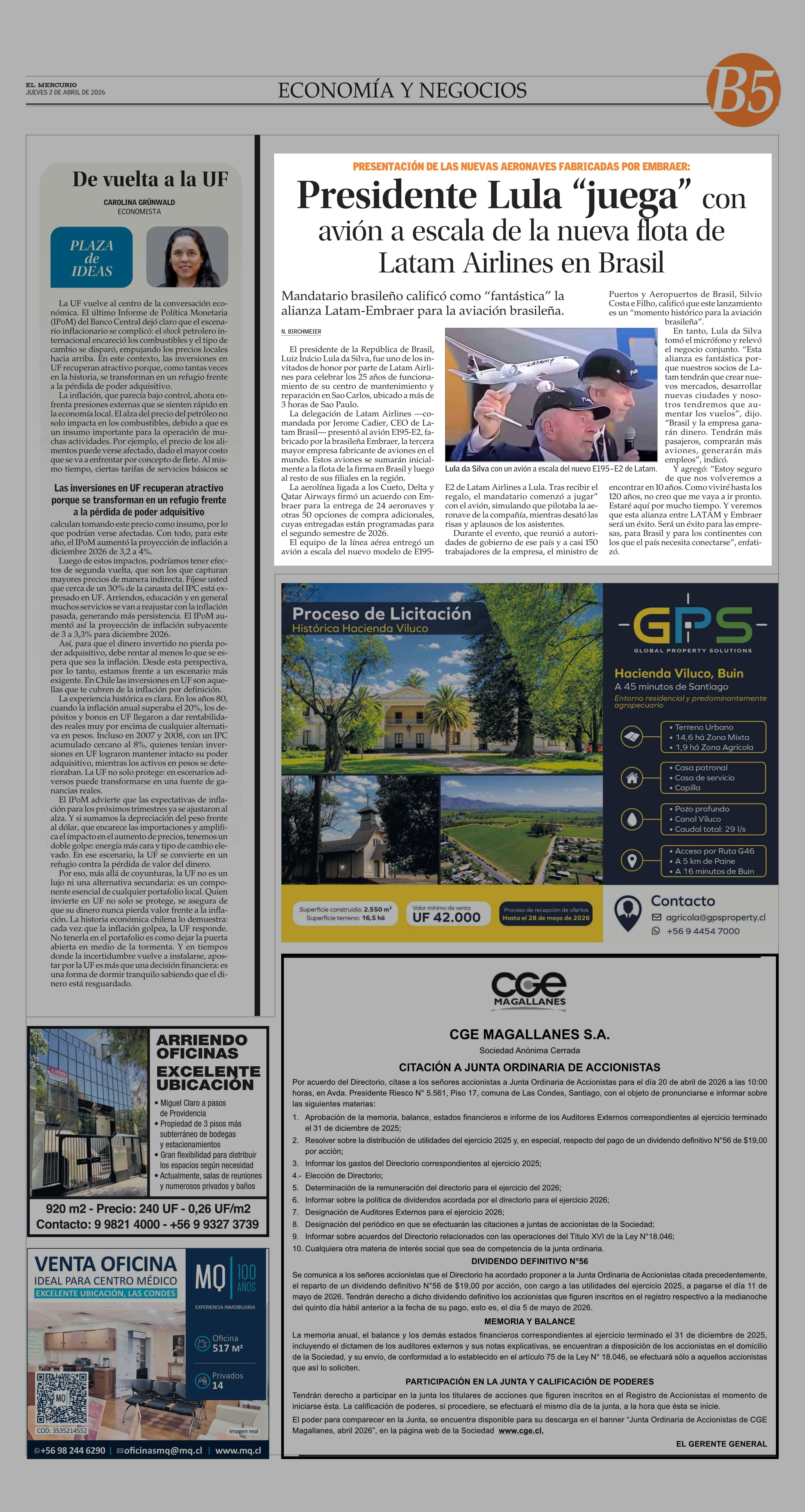 Presidente Lula “juega” con avión a escala de la nueva flota de Latam Airlines en Brasil 02-04-2026 El Mercurio |