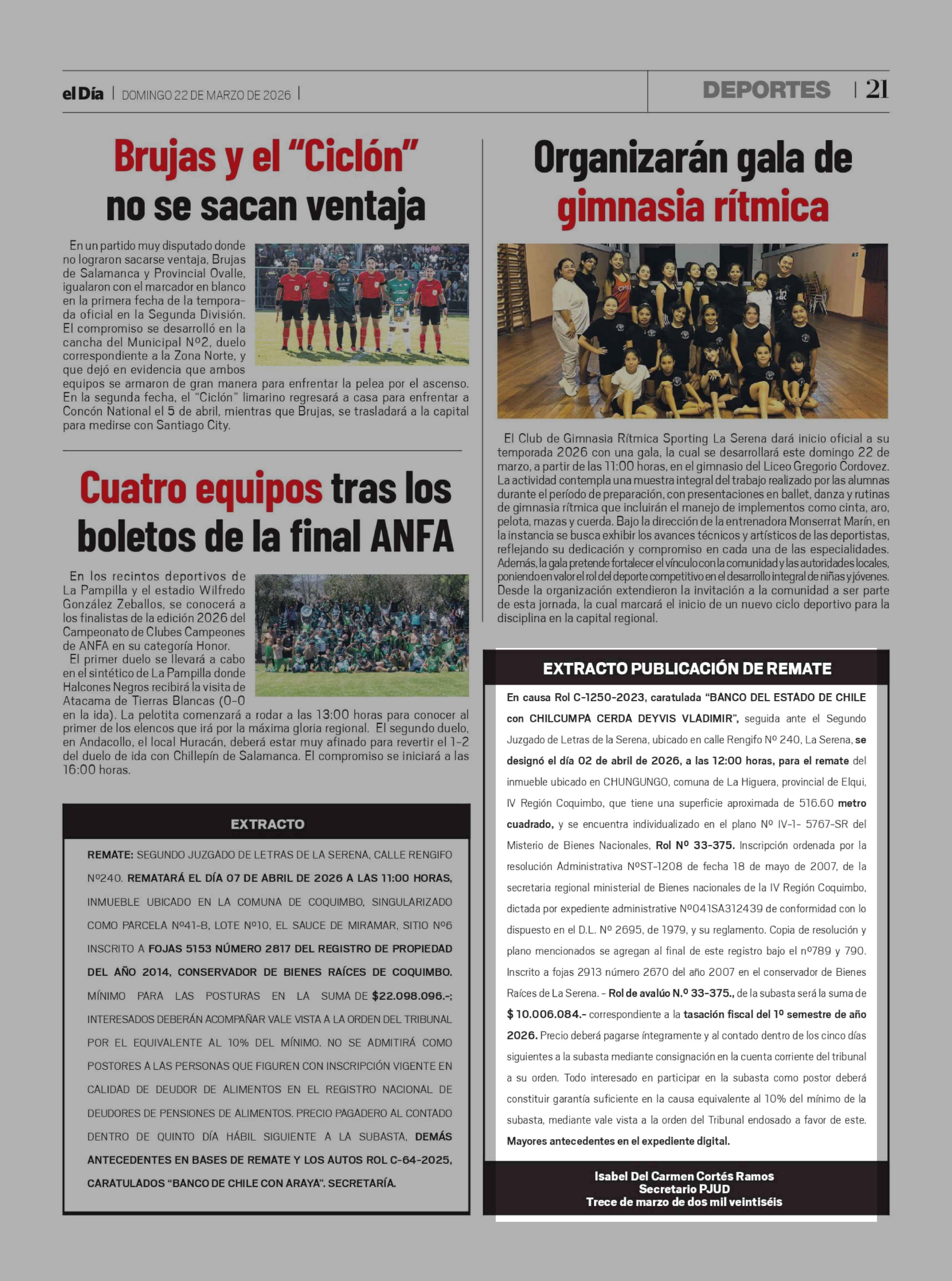 Fecha: 22-03-2026 Sector: Remates Región: Región de Coquimbo