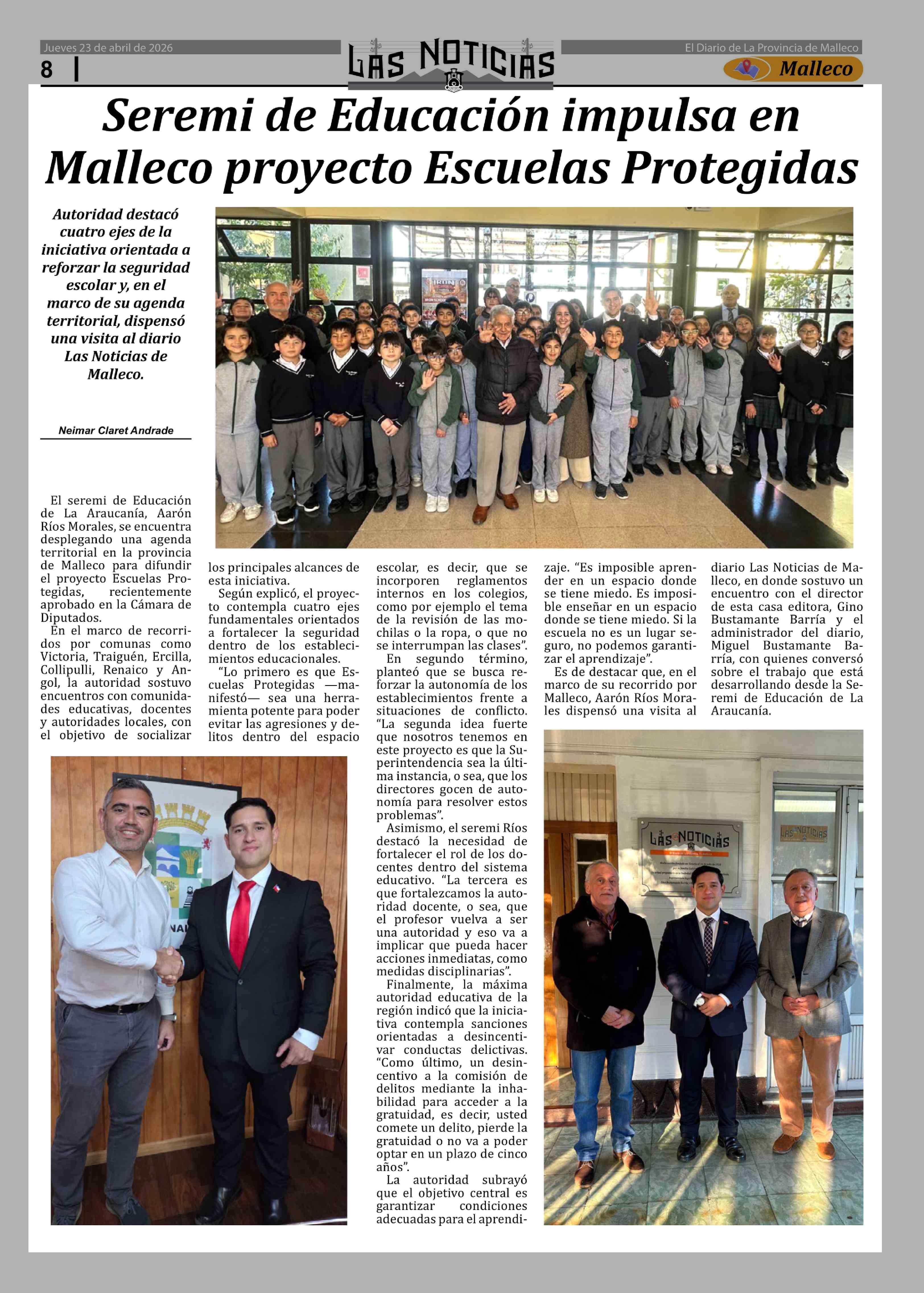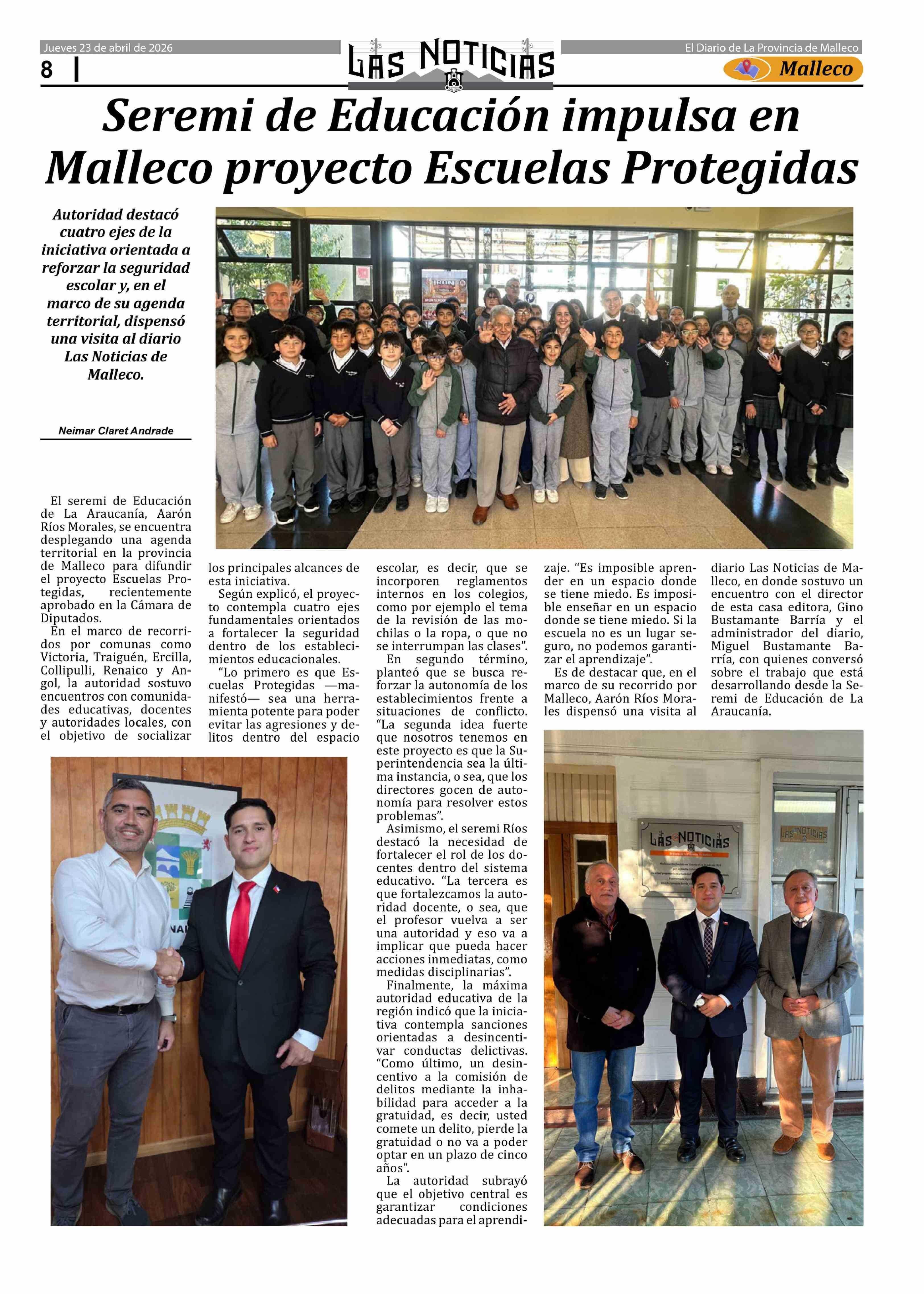 Seremi de Educación impulsa en Malleco proyecto Escuelas Protegidas 23-04-2026 Las Noticias |