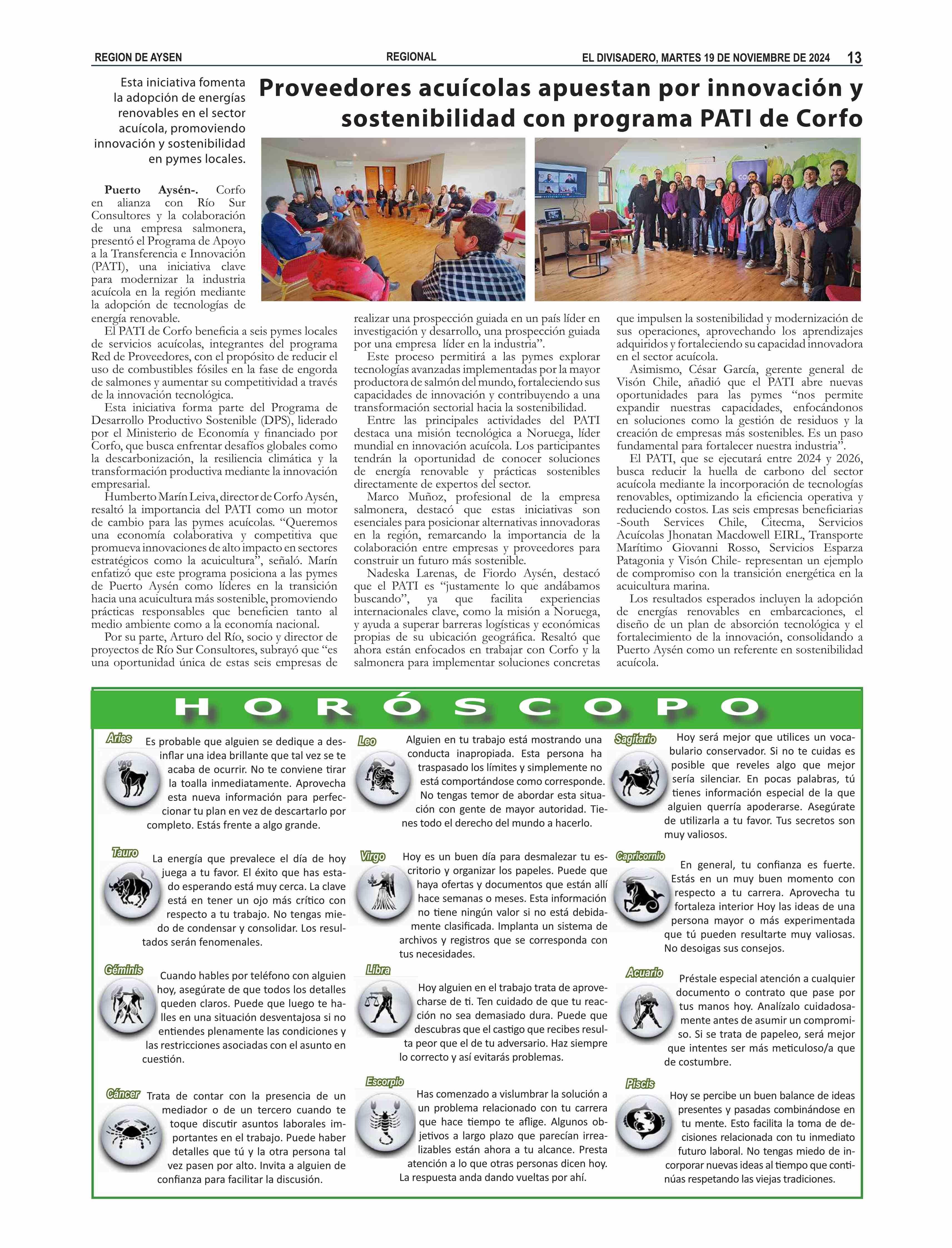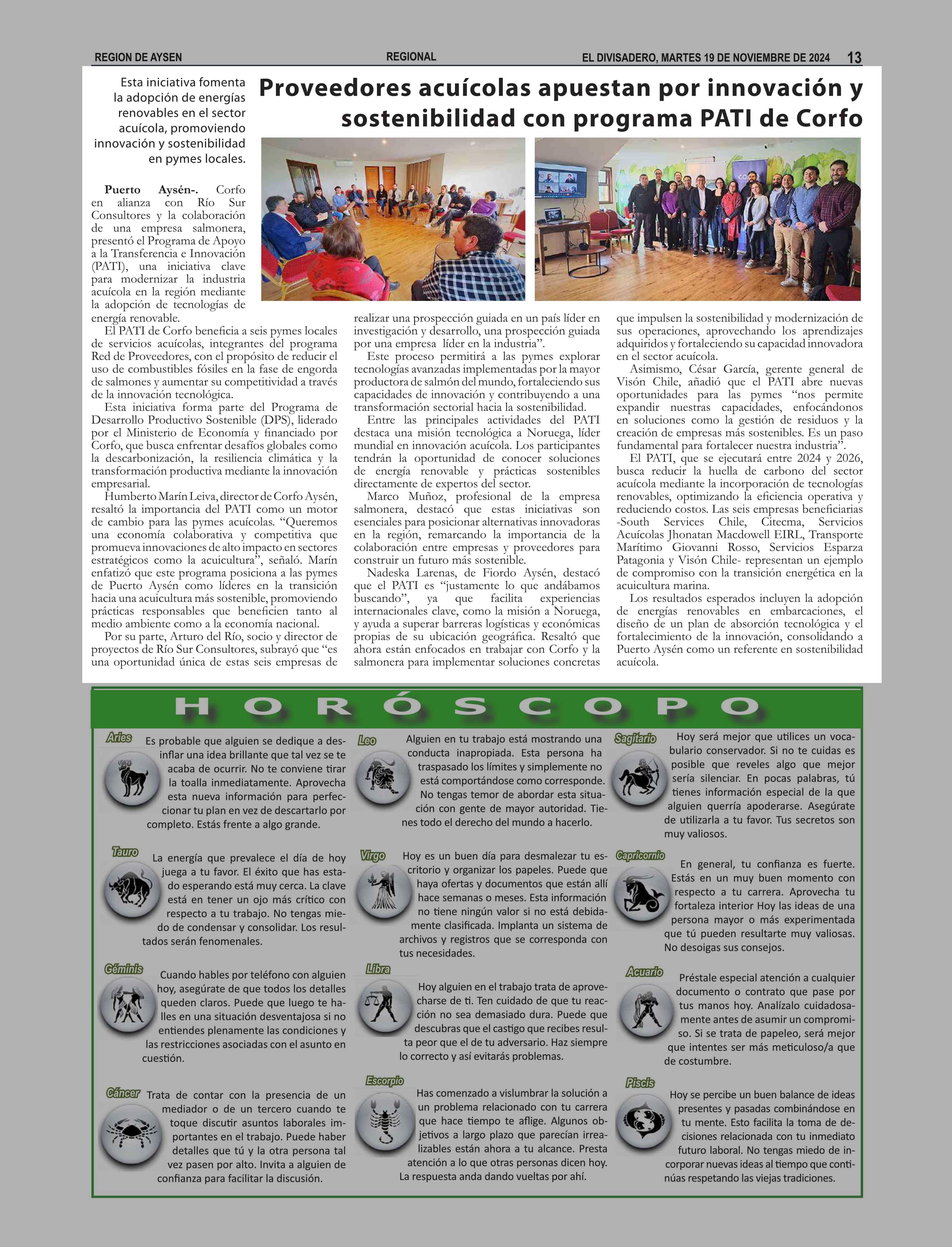 Proveedores acuícolas apuestan por innovación y sostenibilidad con programa PATI de Corfo 19-11-2024 El Divisadero |