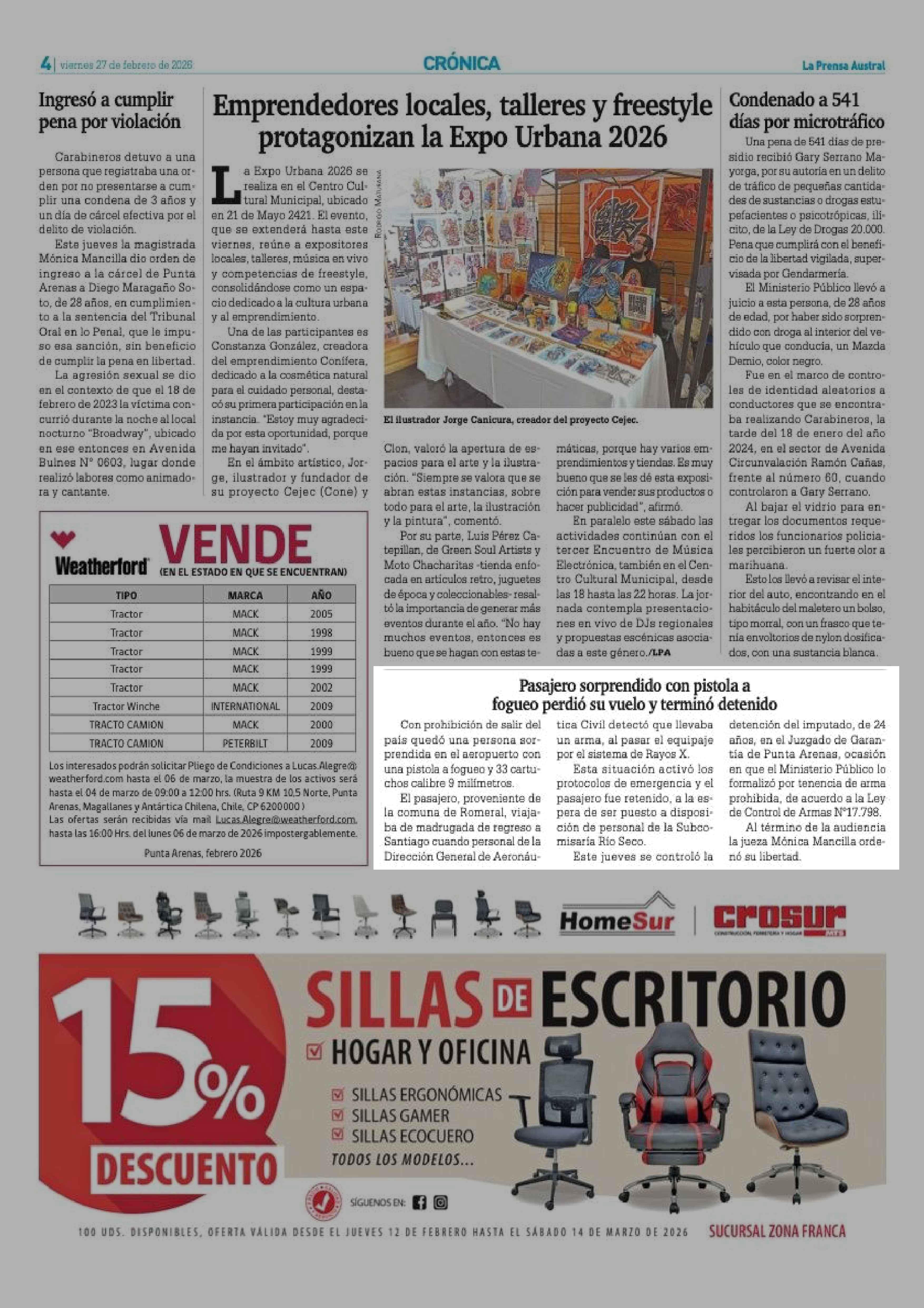 Fecha: 27-02-2026 Sector: Noticia general Región: Región de Magallanes y de la Antártica Chilena