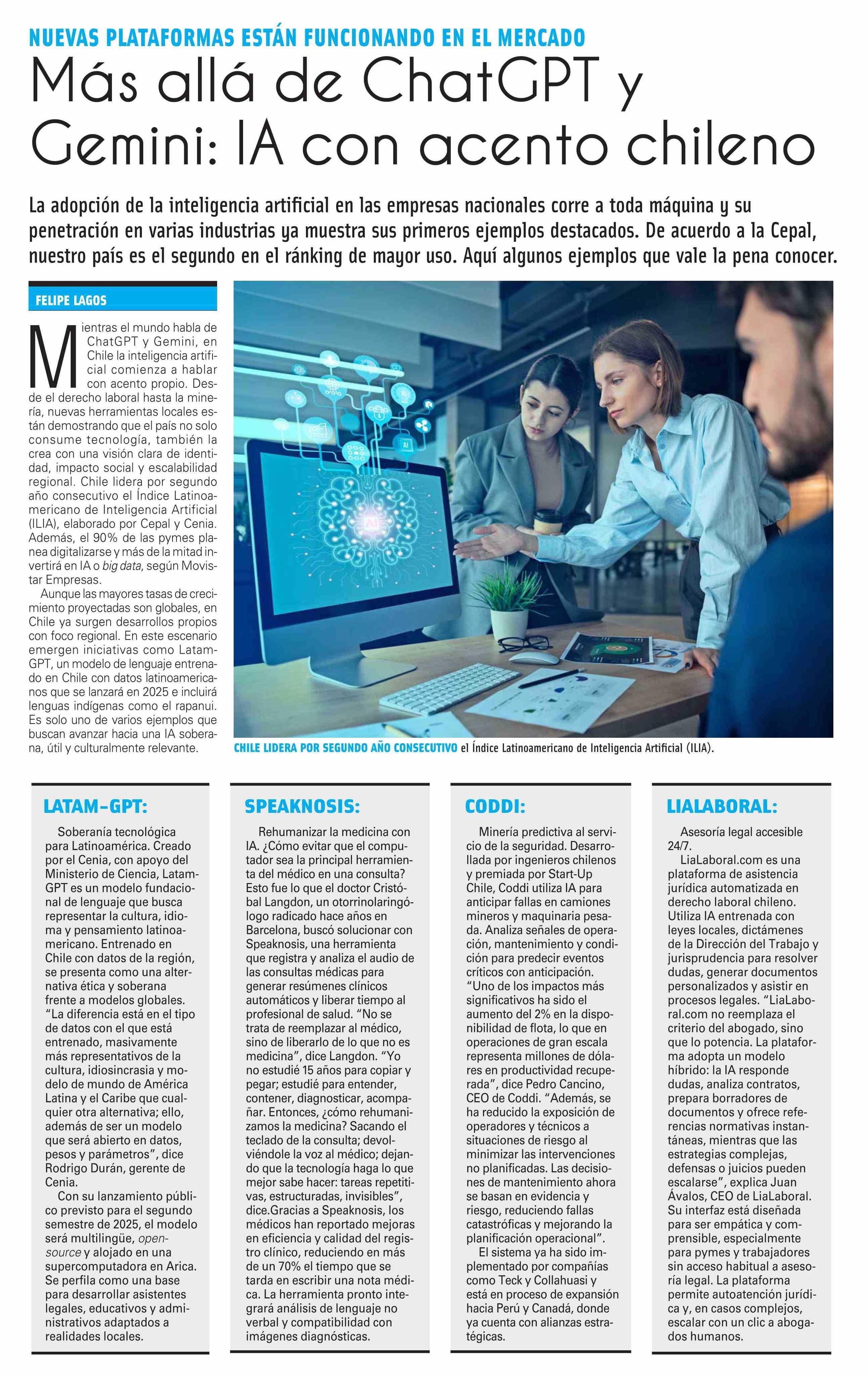 Más allá de ChatGPT y Gemini: IA con acento chileno 25-06-2025 El Mercurio |