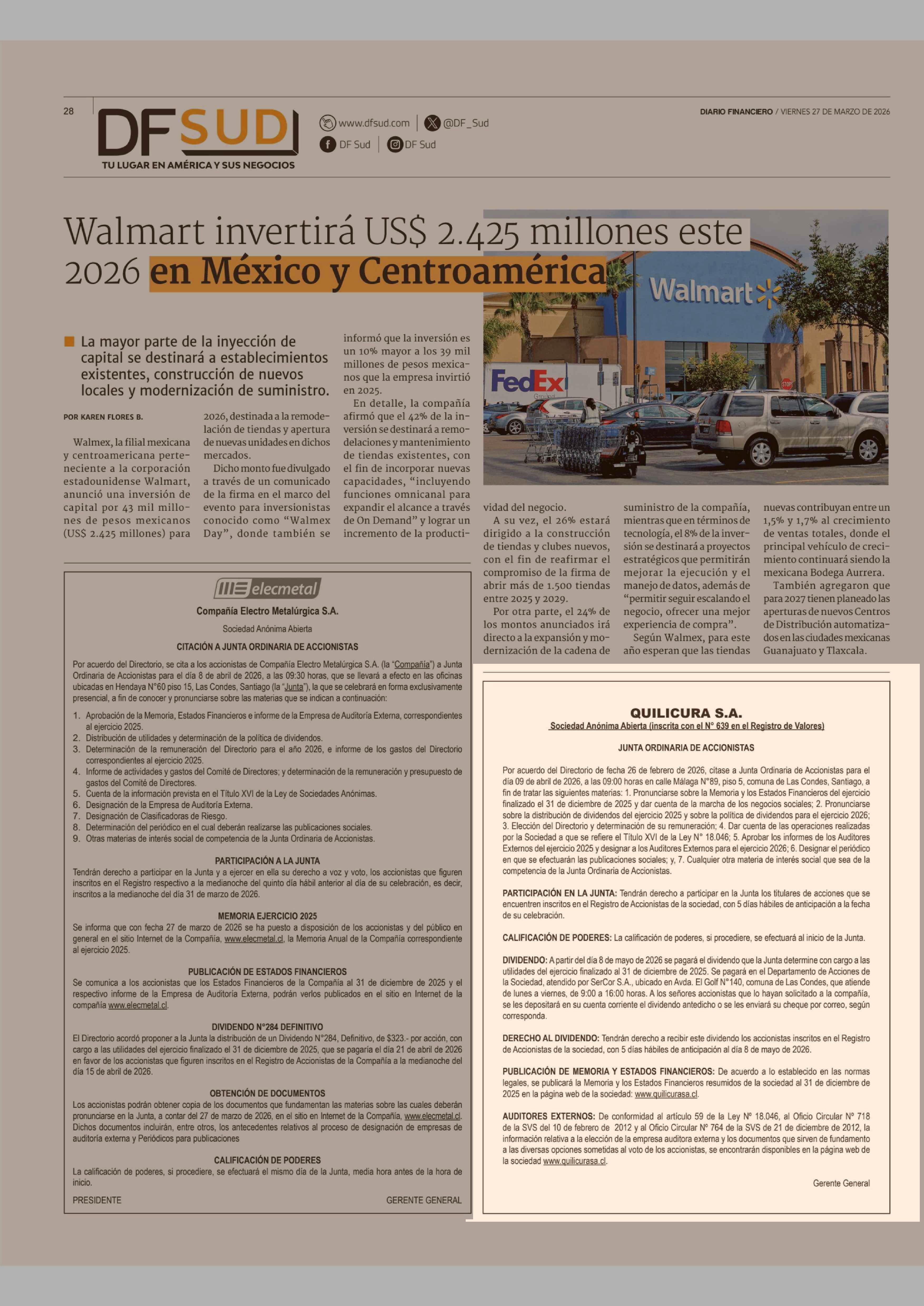 Fuente: Diario Financiero (Diario Financiero) Página(s): 28